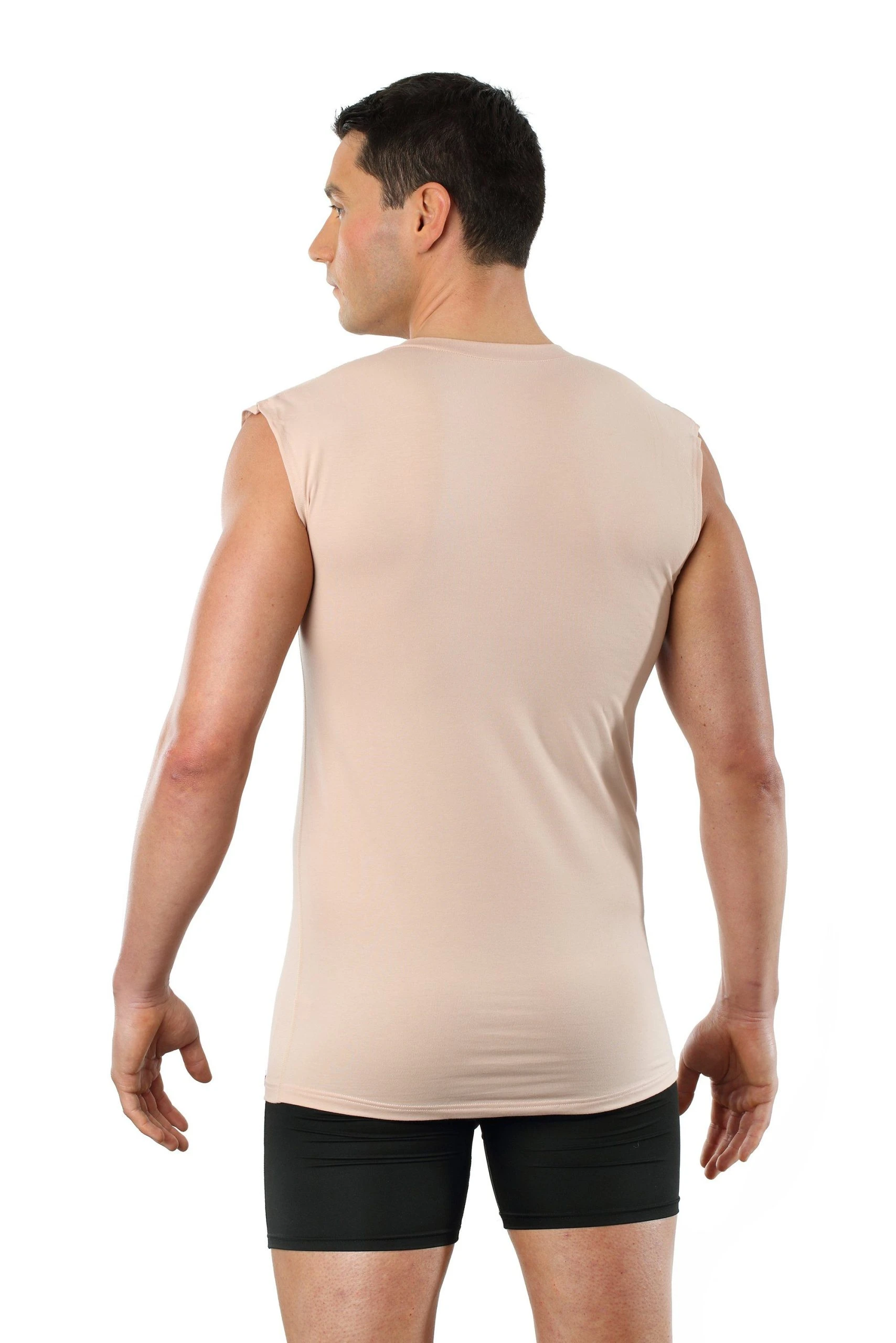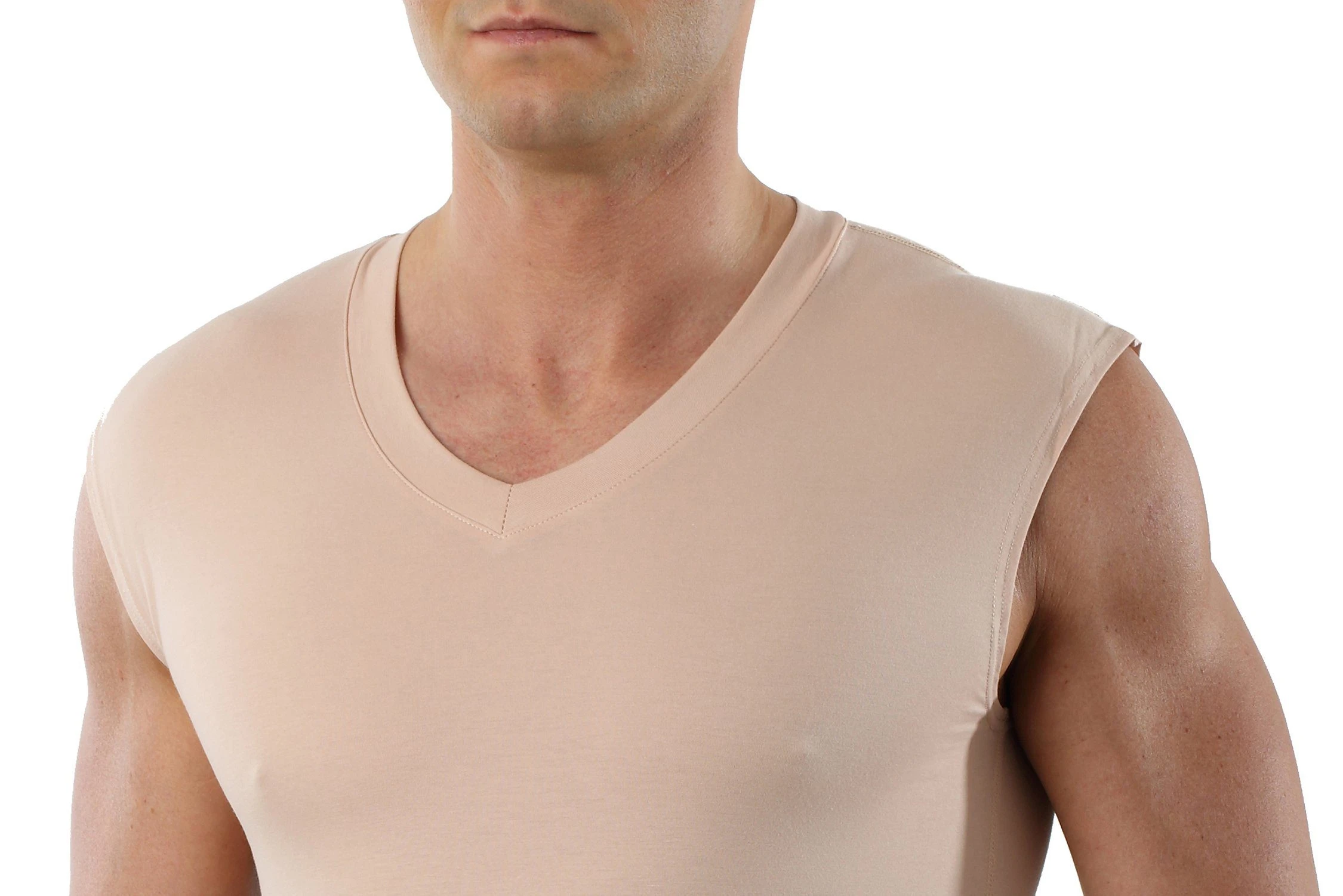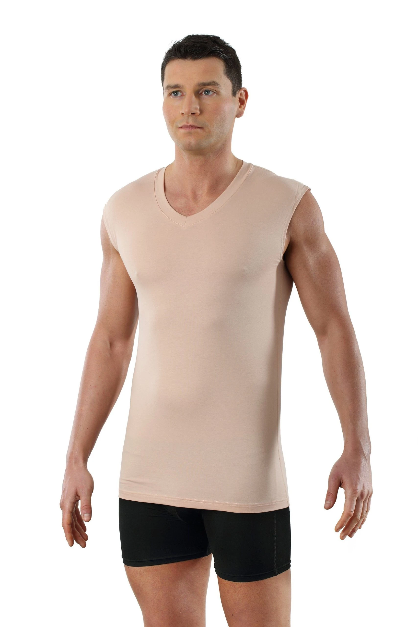 ALBERT KREUZ Unsichtbares Herrenunterhemd aus atmungsaktivem Micromodal Light ohne Arm mit V-Ausschnitt in Beige