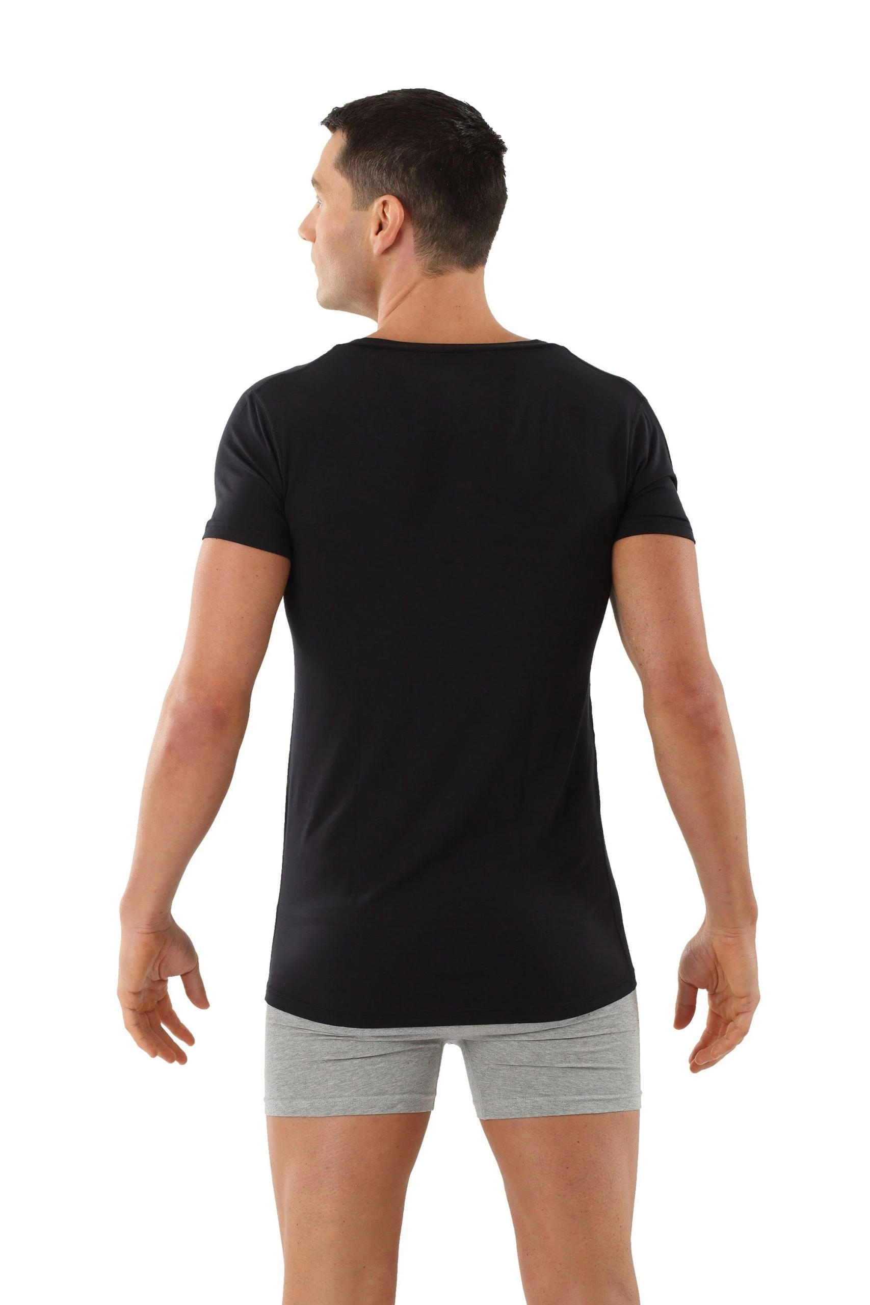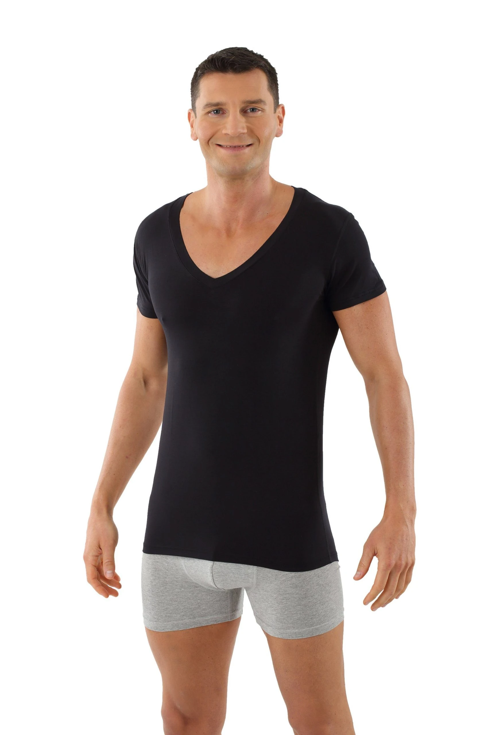 ALBERT KREUZ Herrenunterhemd aus atmungsaktivem Micromodal Light mit kurzem Arm und tiefem V-Ausschnitt in Schwarz