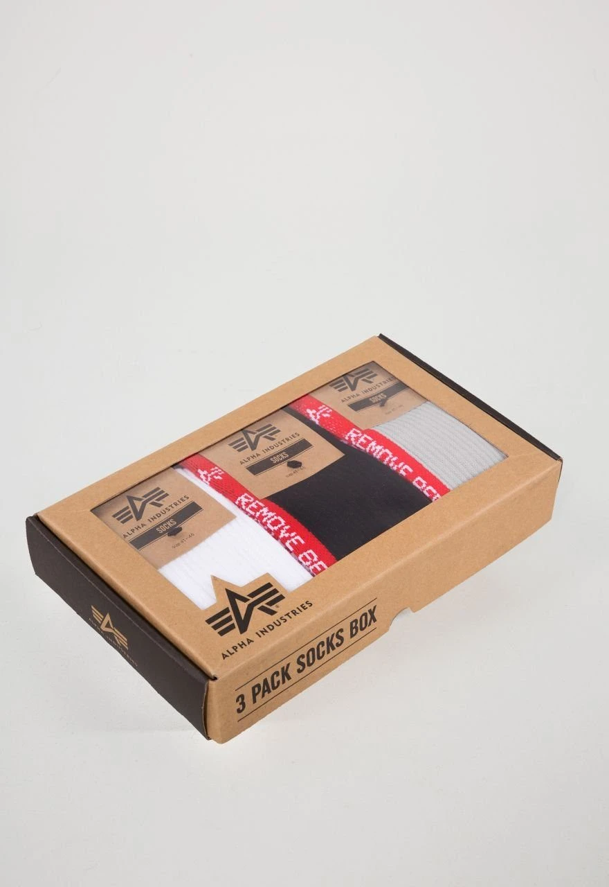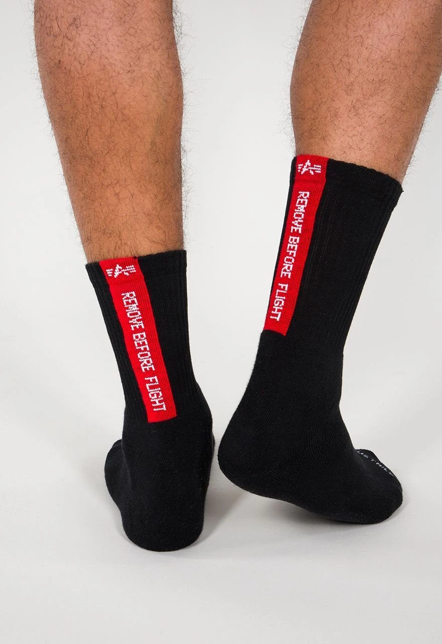 Inspiriert von unserem legendären Remove Before Flight Anhänger, haben wir den Schriftzug jetzt auch auf Socken gebracht. Aber keine Sorge, du musst die Socken nicht ausziehen, wenn du wegfliegst? PRODUKTDETAILS: Rotes Remove Before Flight Logo, Box mit 3 Paar. MATERIALZUSAMMENSETZUNG: Oberstoff: 95% Baumwolle, 5% Elastan
