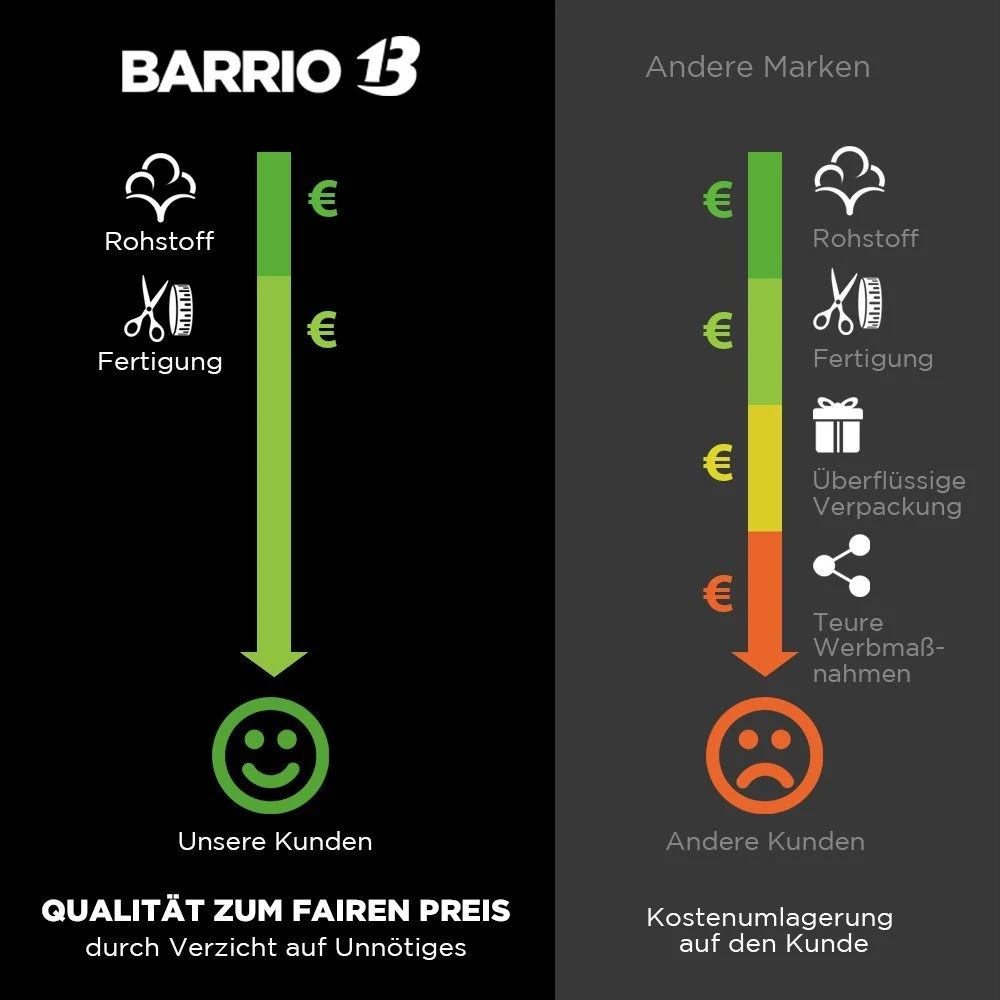 Herren Boxershorts aus dem Hause Barrio 13 gehören seit Gründung zu unseren Kernprodukten. Moderne Männer mit Unterhosen bzw. generell Unterwäsche in einer guten Qualität zu einem fairen Preis ist seit jeher unsere Mission. Die Qualität unserer Produkte spiegelt sich in der Materialauswahl wieder. Wir benutzen nur feingewobene Baumwolle in der Produktion. Im Gegensatz zu unserer asiatischen Konkurrenz bieten wir Retroshorts in einer Größe an, die dem europäischen Markt angepasst ist. Ob für Jungen, Kinder oder Men, für jeden ist die passende Boxershorts dabei, ob bunt schwarz weiß grau oder blau. Die sexy Shorts mit langem Bein ist für Sport oder Business ideal geeignet. Das Angebot für diese Pants beinhaltet 6er Pack. Verpackt in einem Karton eignet es sich optimal als Männer Geschenk zu Weihnachten Ostern Valentinstag Vatertag. Bewusst decken wir auch Übergrößen ab um jeden Mann die optimale Herrenunterhose anbieten zu können. Bei den Größen S M L XL XXL XXXL handelt es sich um einen Barrio 13 Standard.