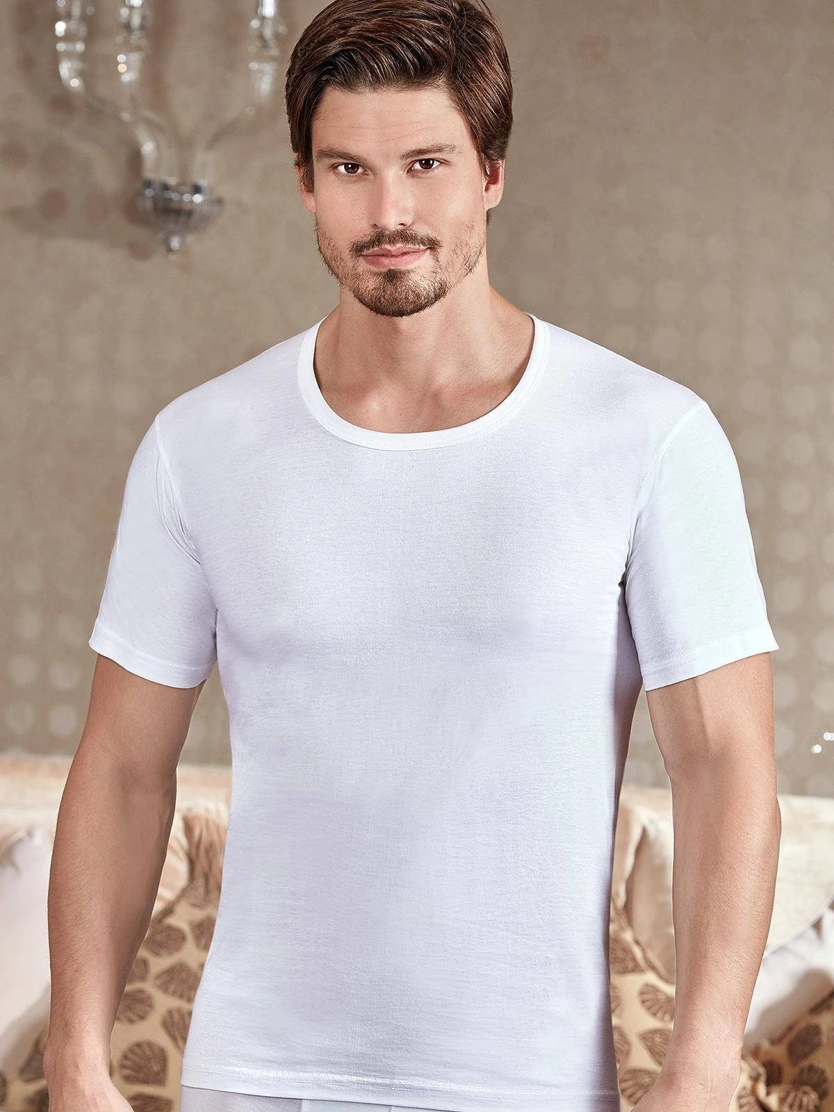Berrak Collection Unterhemd Kurzarm Rundhals Herren Jersey Business Shirt, Slim Fit Weiß, BS1024