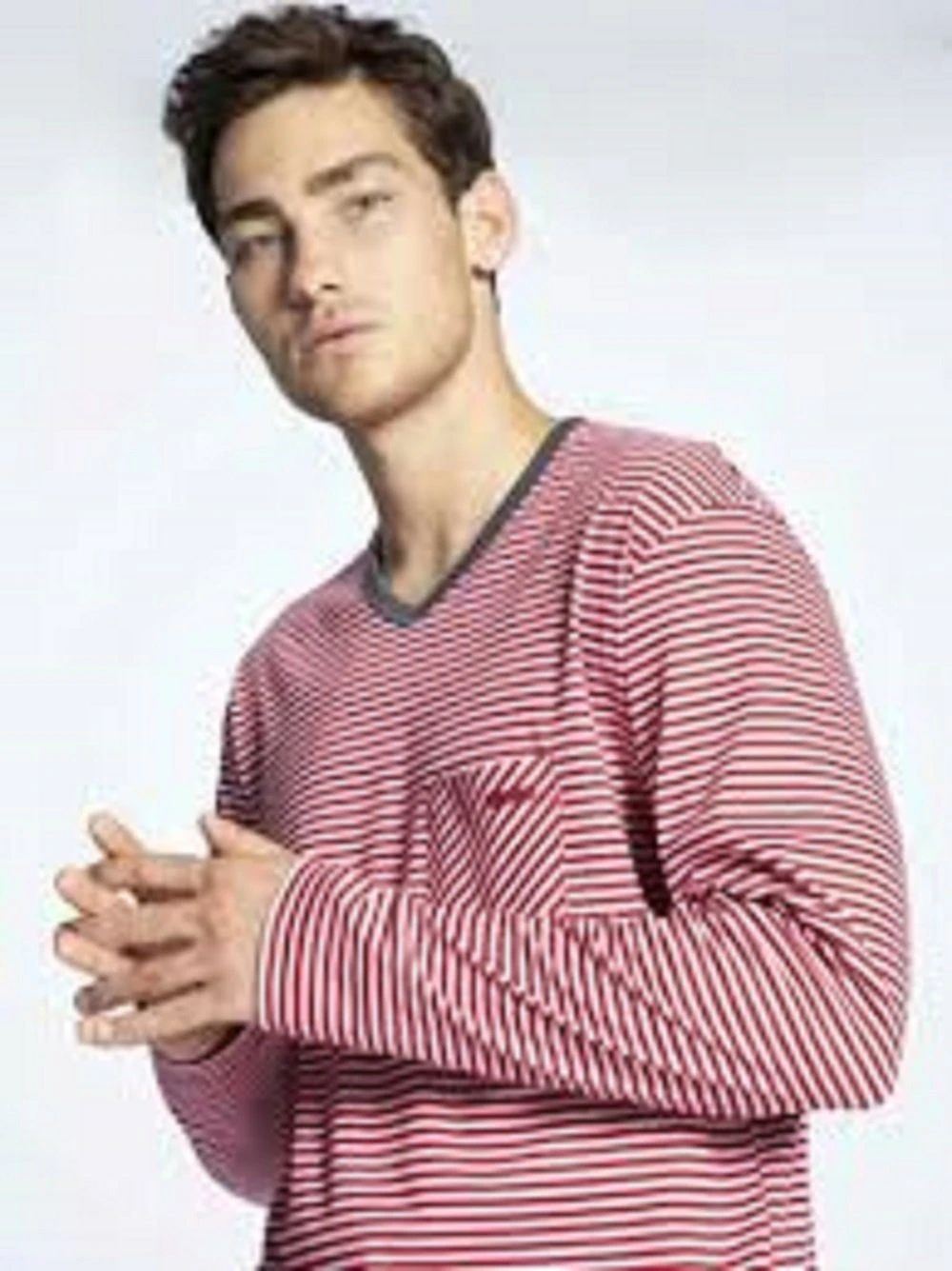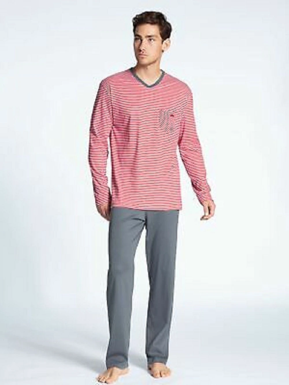 CALIDA Pyjama Calida Pyjama Rot Gestreift 41667 (1 Tlg., 1 Stück) Brusttasche