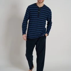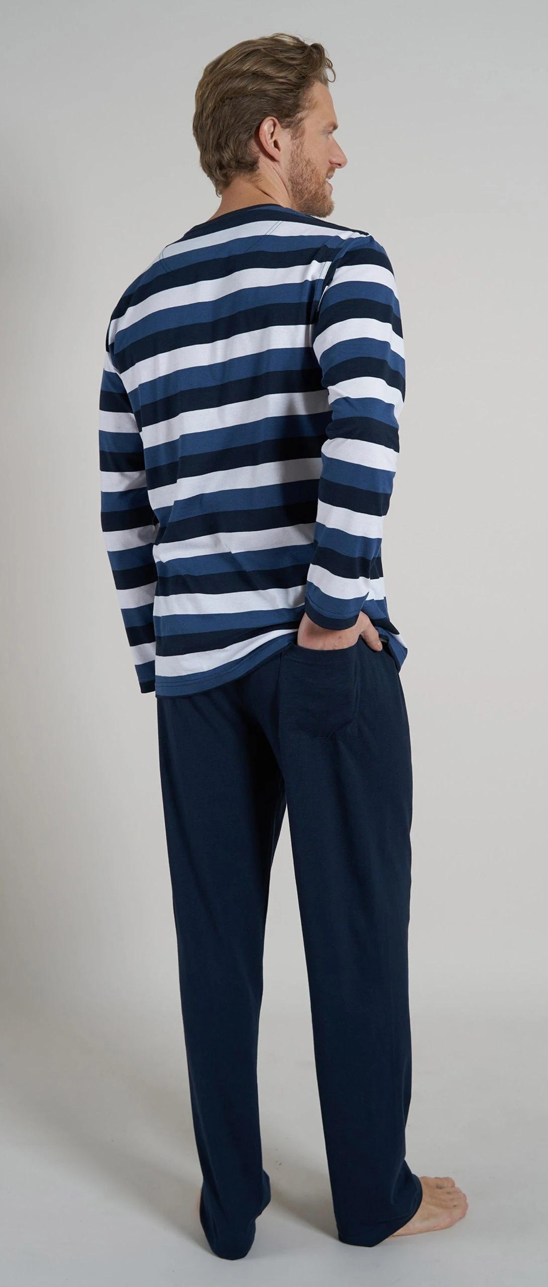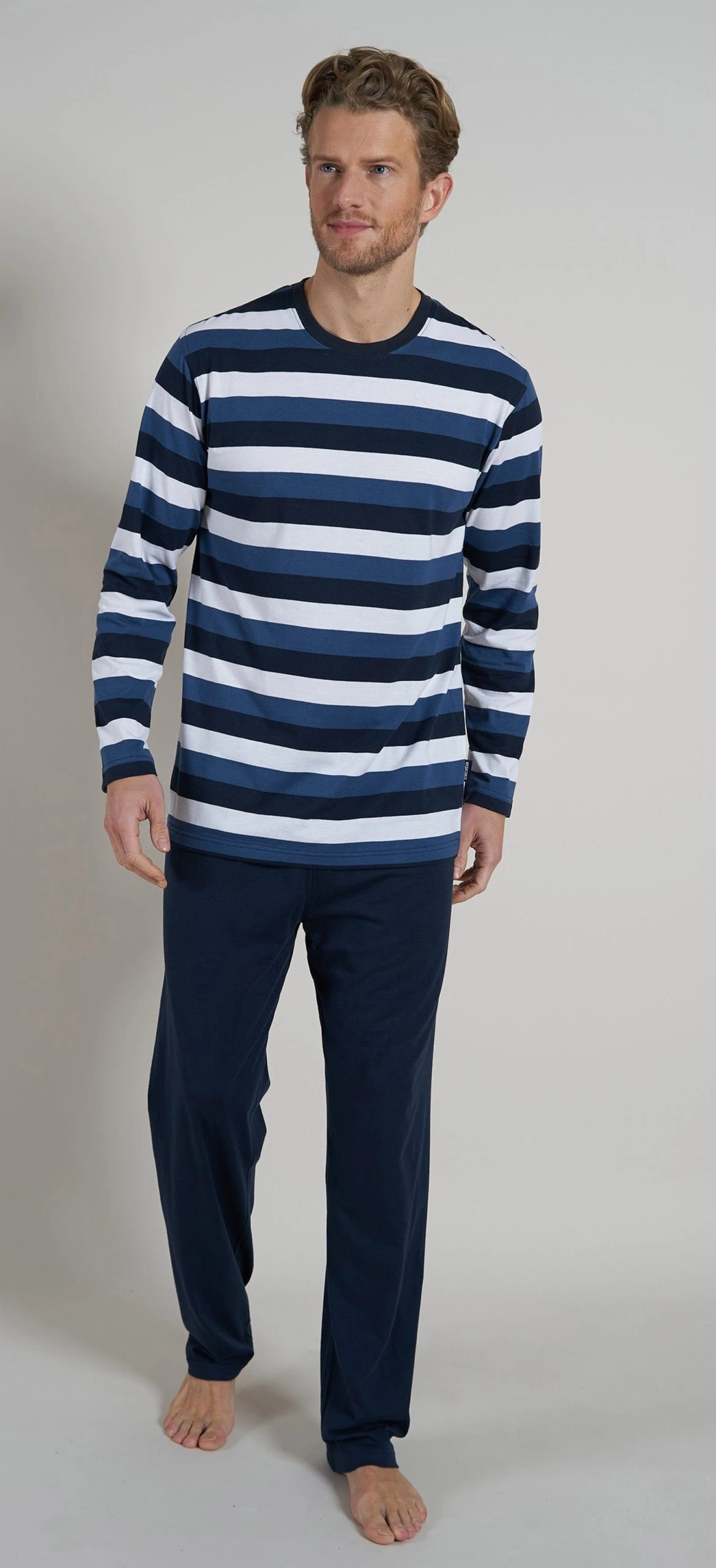 Ceceba Herren Schlafanzug. Material: 60% Baumwolle, 40% Polyester. Klima Aktiv: Bügelfrei, Temperatur ausgleichend, Atmungsaktiv. Das Oberteil hat lange Arme und einen Rundhals Ausschnitt. Am Bund mit Gummizug und eine Gesäßtasche.