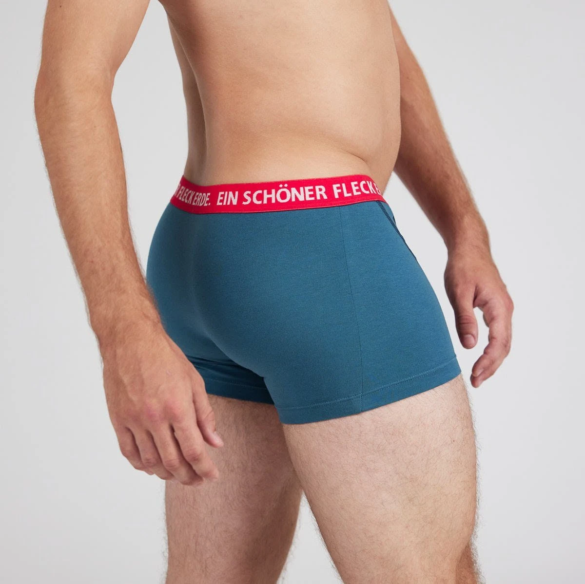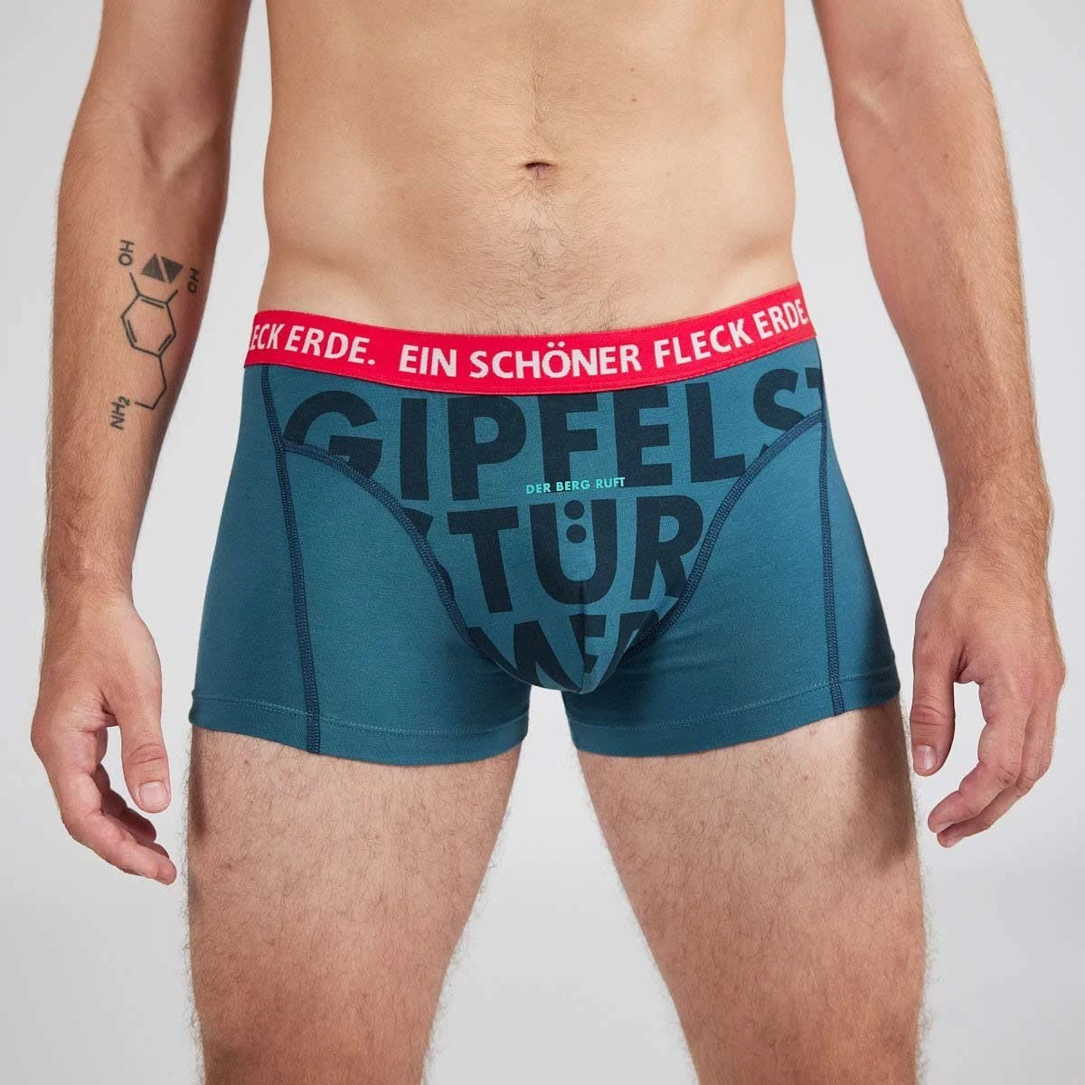 Die Der Berg ruft Boxershort von EIN Schöner Fleck Erde für Herren ist alpine, trendige Unterwäsche aus Salzburg in Bio-Qualität, die ökologisch, nachhaltig und fair produziert wird. EIN Schöner Fleck Erde gestaltet Unterwäsche in Bio-Qualität, die Eure schönsten Flecken bedecken und zugleich die schönsten Flecken der Erde zeigen. Faire Arbeitsbedingungen, angemessene Bezahlung und eine Fertigung in Europa ist für das Team von EIN Schöner Fleck Erde ein Muss. Das fühlt sich gut an, auch auf der Haut. Alle Teile sind in einer liebevoll gestalteten, wiederverwendbaren Box verpackt. Unterwäsche raus, andere Nettigkeit rein und weiterverschenken. Tolles Up-Up-Up-Cycling, oder? Mit einer Portion alpinem Humor wird das Lieblingsstück zum lustvollen Geschenk für gute Freunde, zum Mitbringsel für die Lieben zu Hause oder zum wertvollen Erinnerungsstück. Es zaubert auf jeden Fall ein Lächeln ins Gesicht. – Mit Liebe in Salzburg entworfen – Gefertigt unter fairen Bedingungen in der EU – Weiterverwendbare Verpackung – Maschinenwäsche bei 40° – An der Luft trocknen – Sanft bügeln – 95% Bio-Baumwolle, 5% Elasthan – Materialeigenschaft: elastisch – Zusammensetzung Außenmaterial: 5% Elasthan, 95% Bio-Baumwolle – Außenmaterial: Bio-Baumwolle