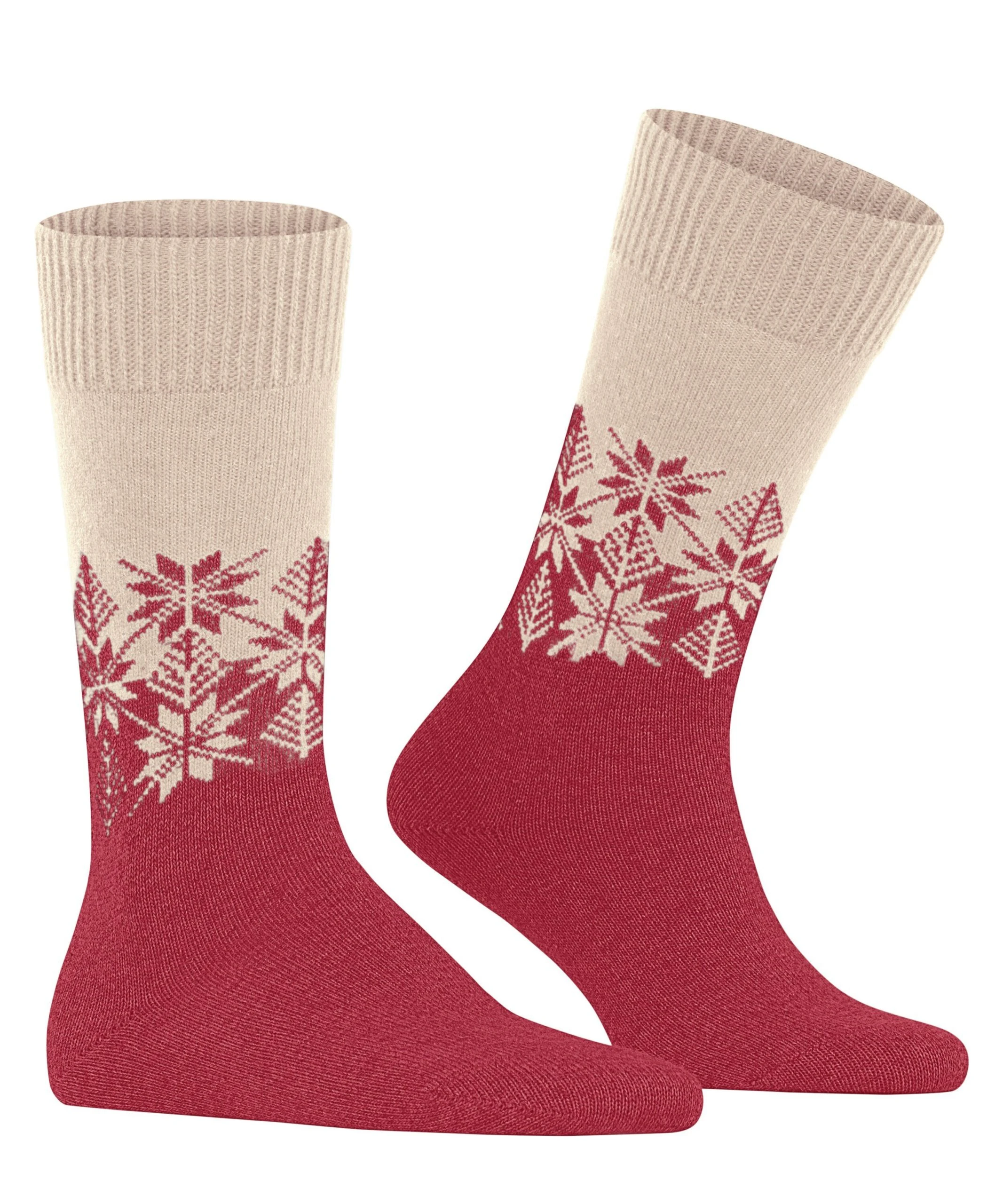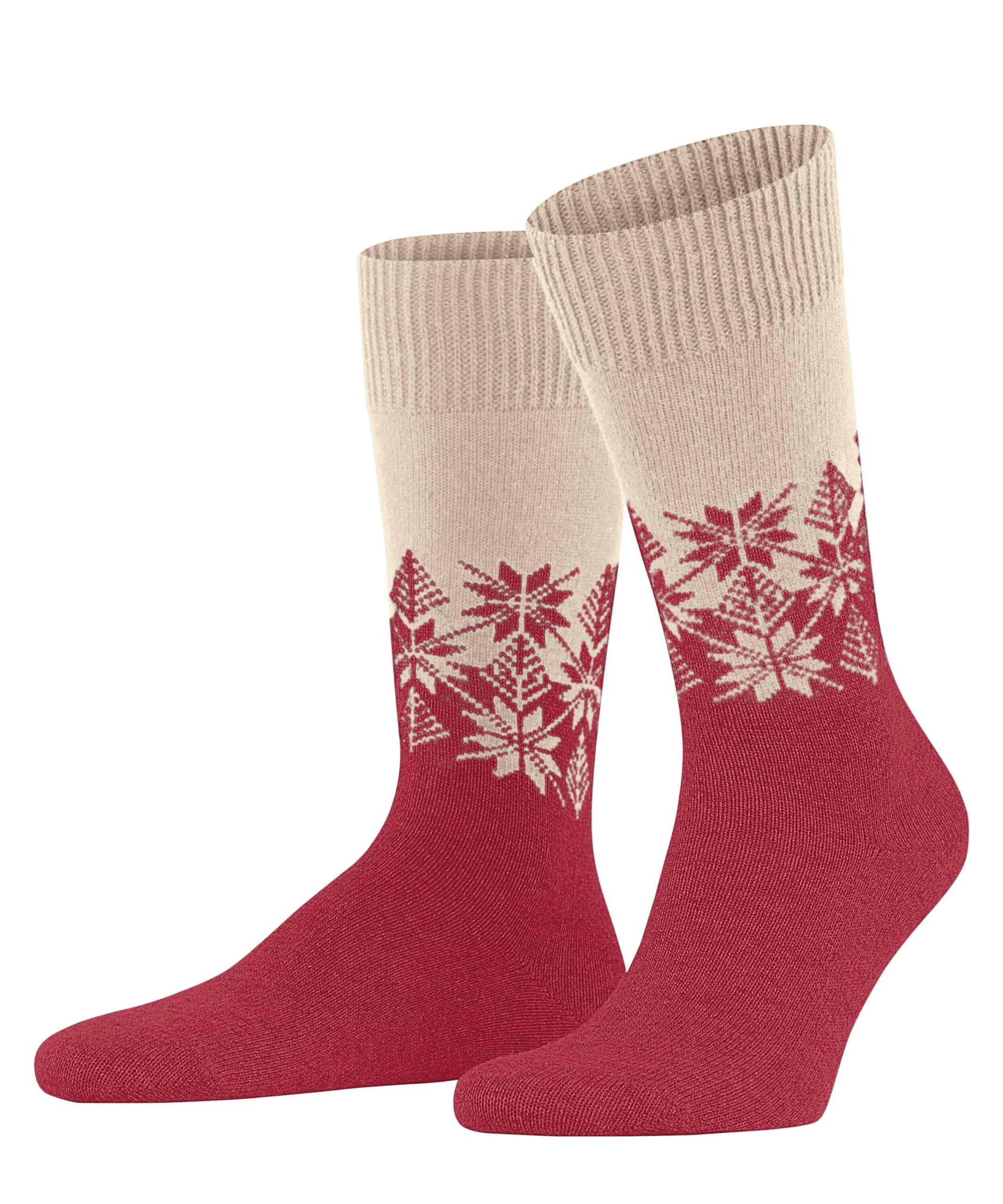Die modern interpretierte Norwegersocke bietet durch das weiche, wärmende Kaschmir im Garn ein angenehmes Tragegefühl sowie eine natürliche Wärmeisolation, die von kaum einer anderen natürlichen Faser übertroffen werden kann. Mit diesen Eigenschaften ergänzt sie Outfits mit derben Boots in der kalten Jahreszeit optimal.