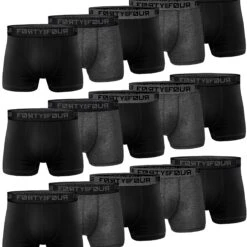 Bestell Dir Deine neue Lieblingsunterwäsche und überzeuge Dich selbst! Die trendigen Boxershorts von FORTYFOUR besitzen hohen Tragekomfort aufgrund ihrer Slim Fit Passform. Die Stoffe für die Produktion werden sorgfältig ausgewählt und Du hast in dem 15er Set mehrere Farben, die Du nach Lust und Laune durchwechseln kannst. Die weichen Baumwollfasern sorgen in Verbindung mit dem Stretchanteil aus hochwertigem Elasthan für ein absolut bequemes Tragegefühl. Die Boxershorts der „Volltonfarben bestehen aus 95% Baumwolle – 5% Elasthan“ und die Boxershorts „Melange Farben aus 67% Polyester – 28% Baumwolle – 5% Elasthan“. Kein Zwicken, keine Druckstellen. Ein weiteres praktisches Feature: Es wurde auf das störende Etikett verzichtet und die Produktinfos stattdessen easy aufgedruckt. Der Komfort-Gummibund engt Dich nicht ein und hält die Boxershorts da, wo sie hingehören. Ein weiteres Argument ist natürlich der absolute TOP-Sparpreis. Let’s try FORTYFOUR!