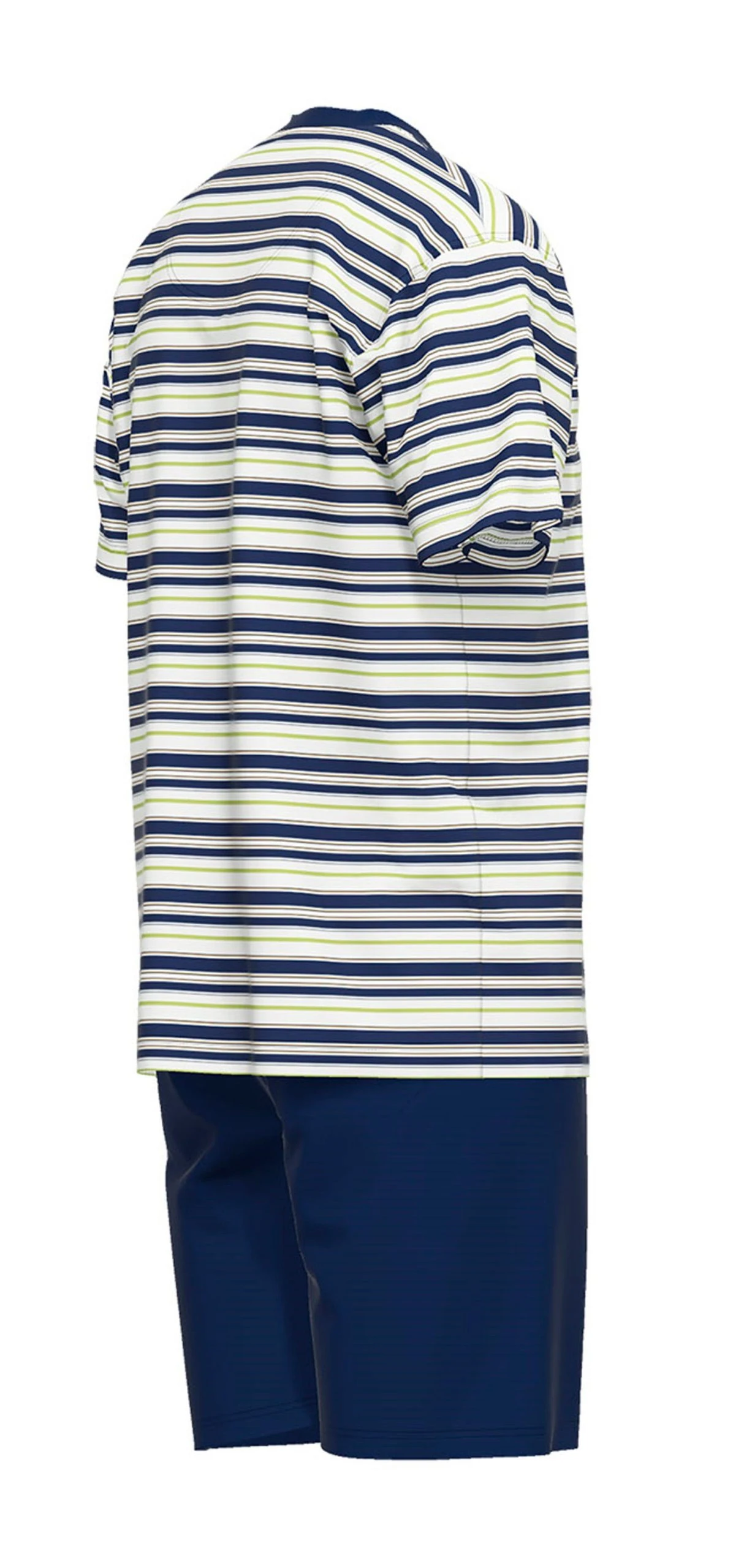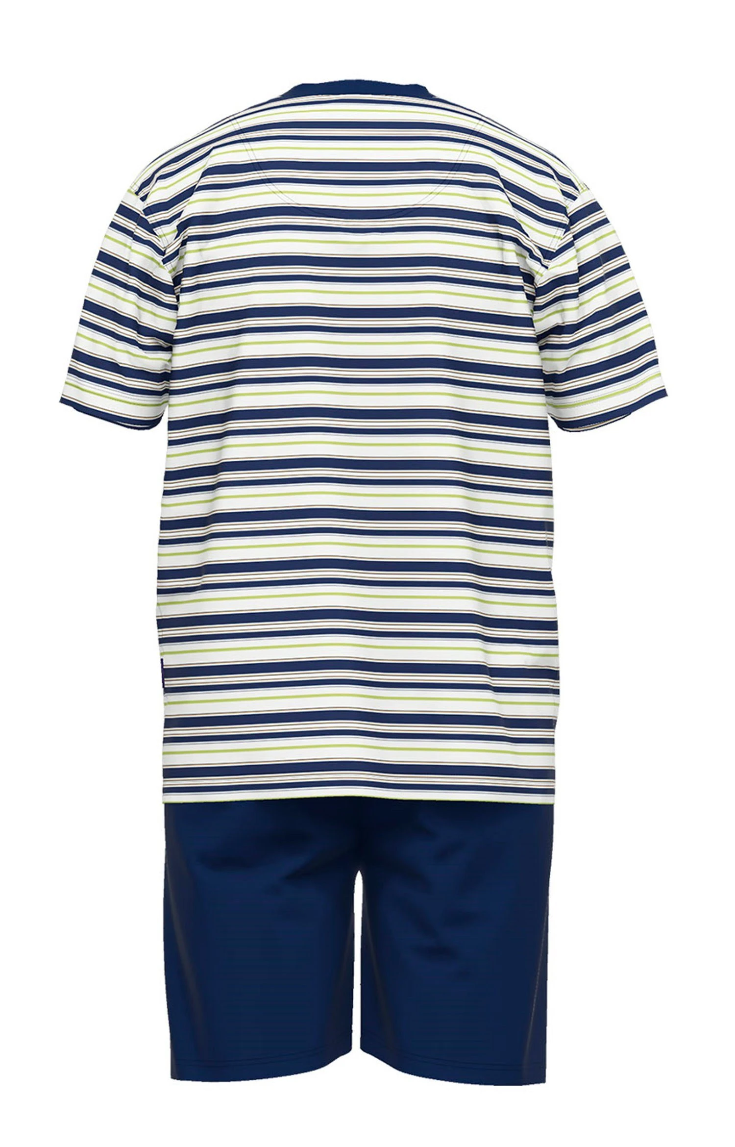 Götzburg Herren Schlafanzug. Material: 100% Baumwolle, Single Jersey Qualität. Mit kurzem Arm und einem Rundhals Ausschnitt. Die kurze Hose hat am Bund Gummizug