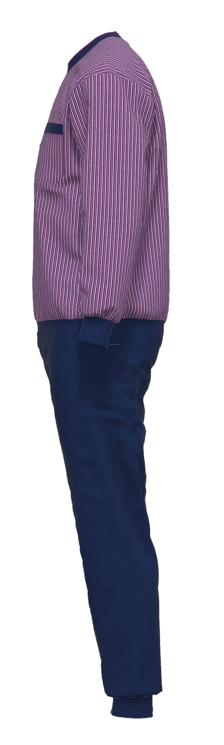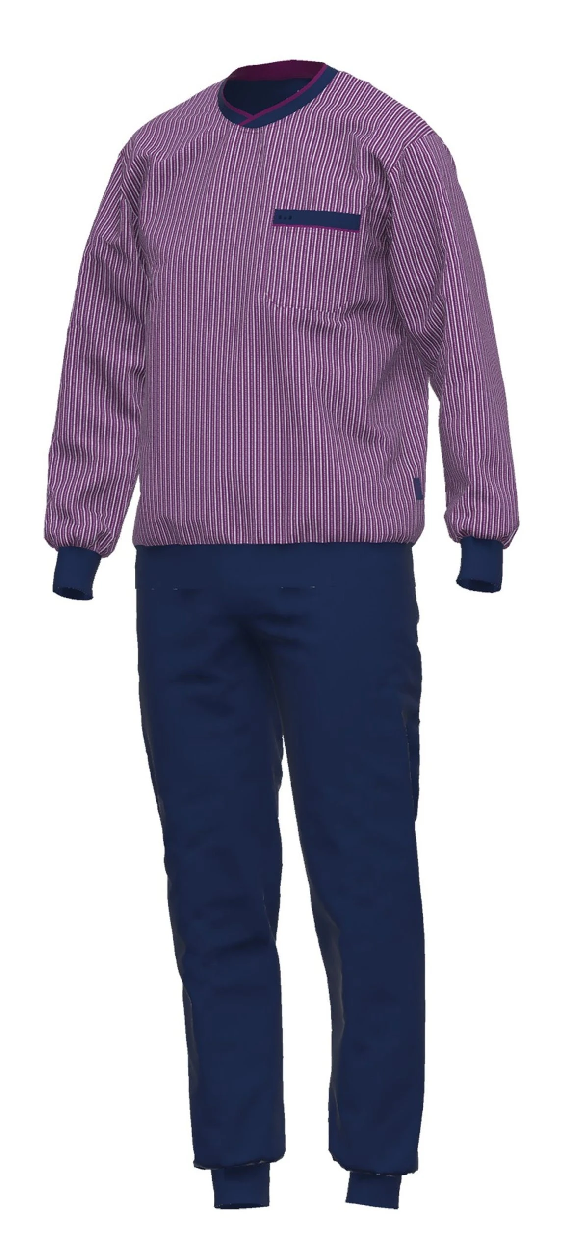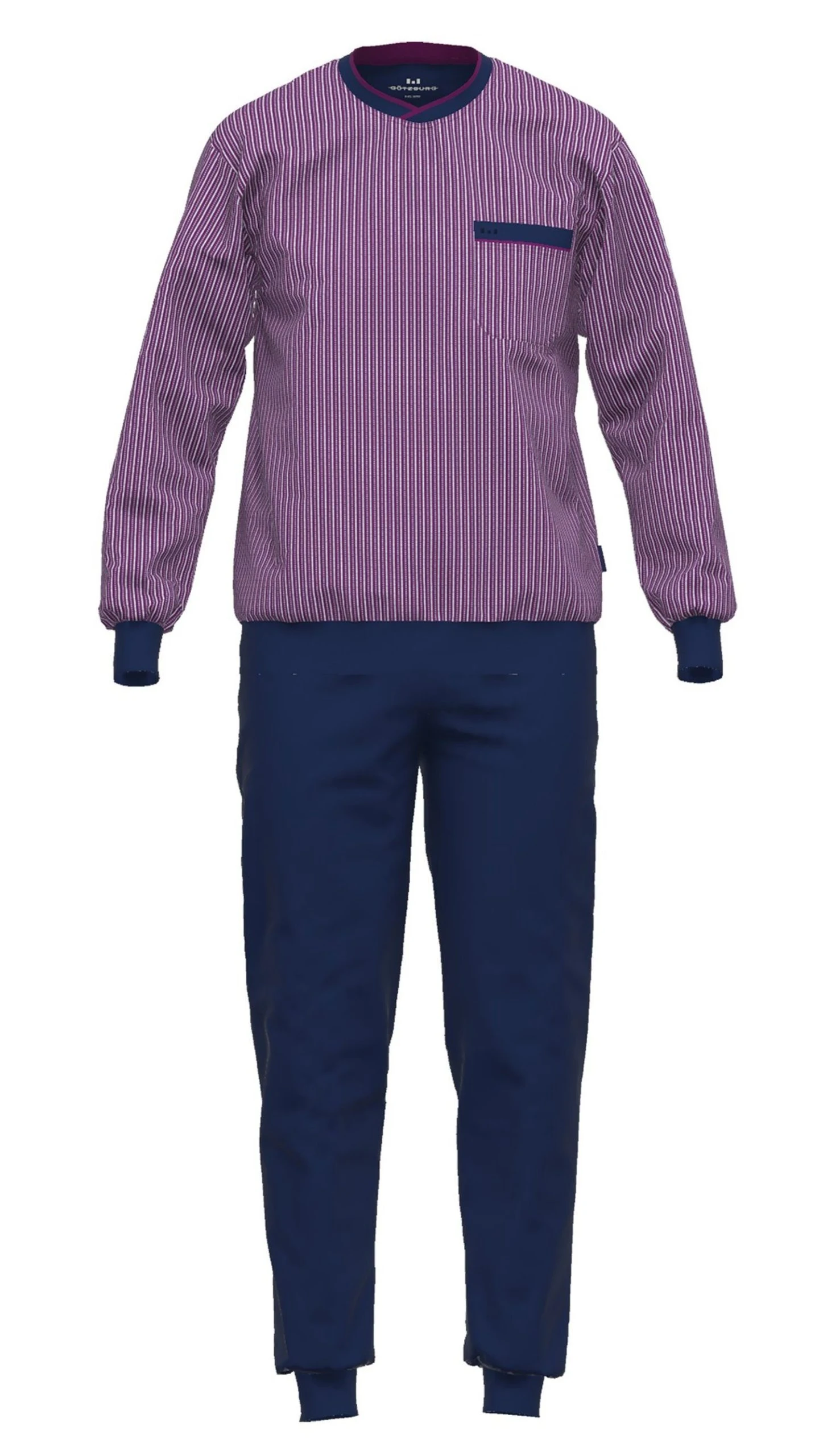 Götzburg Herren Schlafanzug mit Bündchen. Material: 100% Baumwolle, Single Jersey Qualität. Mit langem Arm und Rundhals Ausschnitt. Links mit einer Brusttasche.