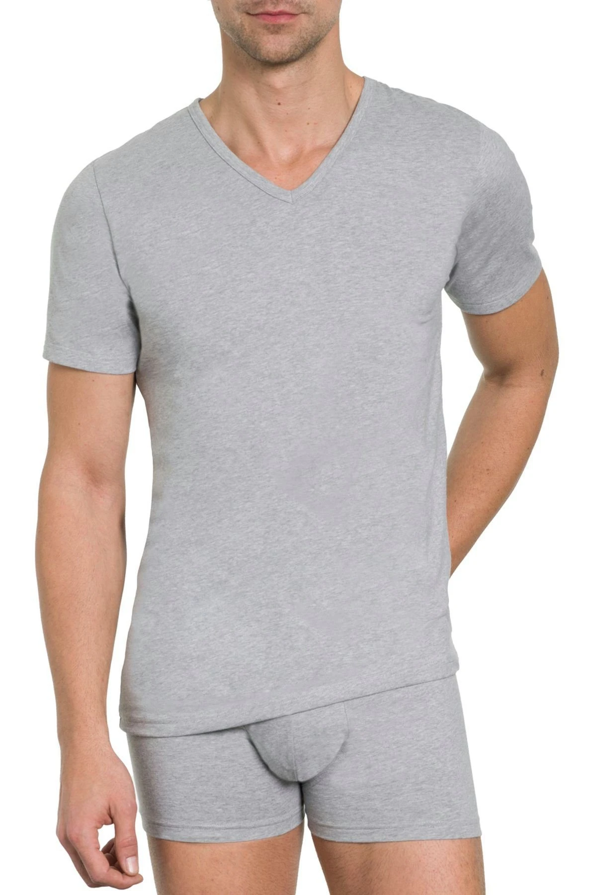 nachhaltige Bio Cotton / Stretch Qualität – Basic im Doppelpack: diese sportlichen Herren Shirts, 1/2 Arm mit V-neck aus 95% Baumwolle 5% Elastan in Single Jersey Qualität ist besonders hautfreundlich und passt sich durch das feinmaschige Material mit Stretchanteil optimal dem Körper an. Ein natürlicher Veredelungsprozess sorgt auch nach vielen Waschgängen für eine perfekte Optik. Diese sportlichen Herrenshirts aus strapazierfähiger, langlebiger Qualität sind zeitlose Basic- Teile im praktischen 2-er Pack,