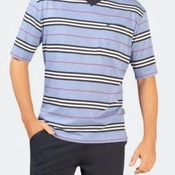 Hajo Herren Schlafanzug mit kurzem Arm und V Ausschnitt. Vorn links mit einer Brusttasche. Material: 62% Baumwolle, 38% Polyester. Klima Komfort: Bügelfrei, atmungsaktiv, trocknerbeständig und hautsympathisch.