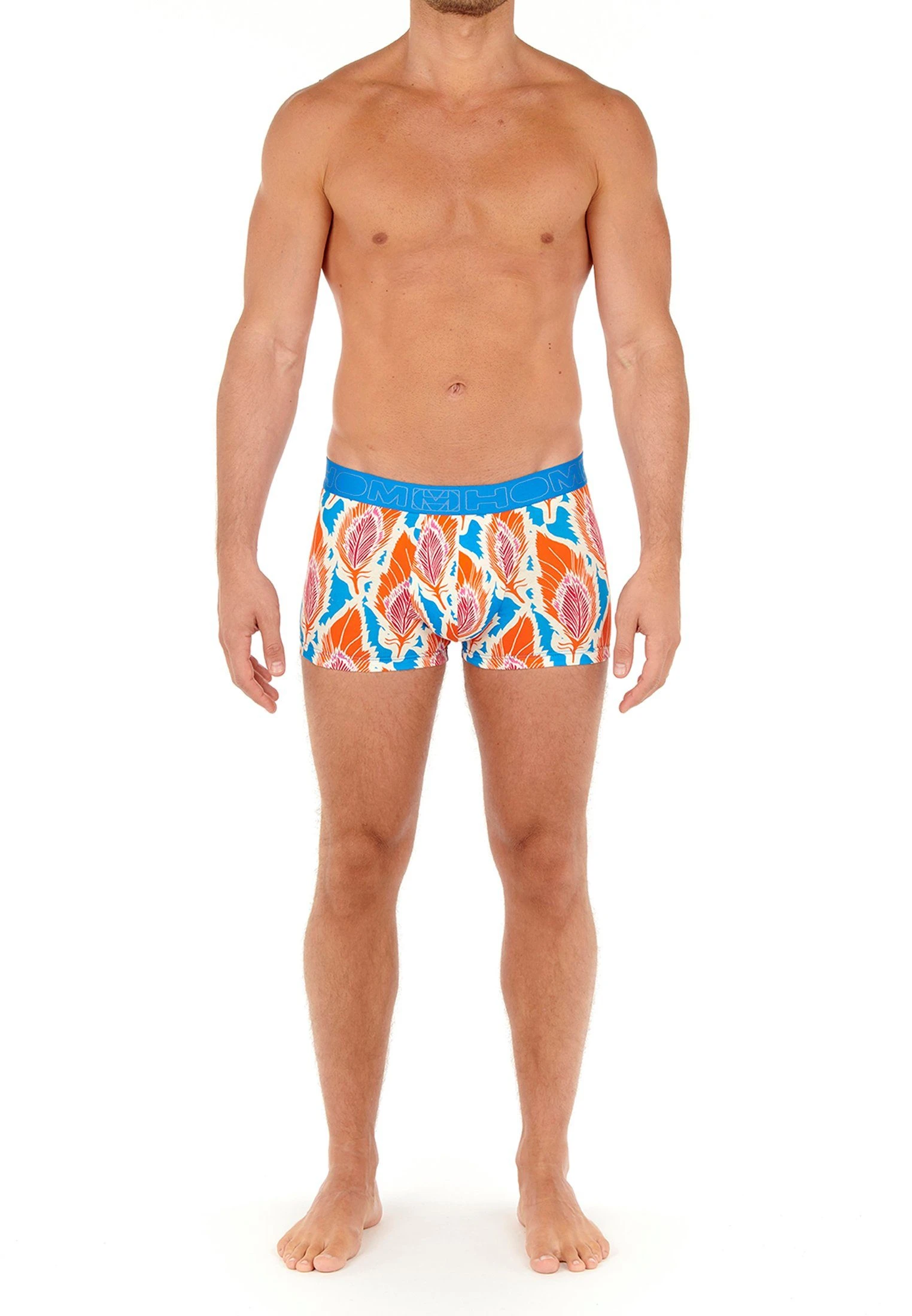 Die Boxershorts für Herren SORMIOU HOM ist eine Boxershorts aus Baumwoll-Stretch, die mit einem mehrfarbigen Pfauenfeder-Muster bedruckt ist.