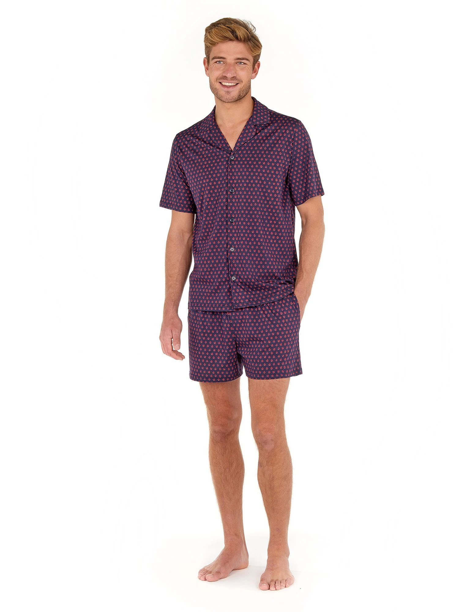 Die GIENS-Linie ist mit diesem kurzen Modell auch als bequemer Shorty erhältlich. Der schicke Print, der die Codes des ‘Art Déco’ neu interpretiert, ist auf beiden Teilen durchgehend und macht diese Sleepwear zu einem Spitzenmodell für diese Saison.
