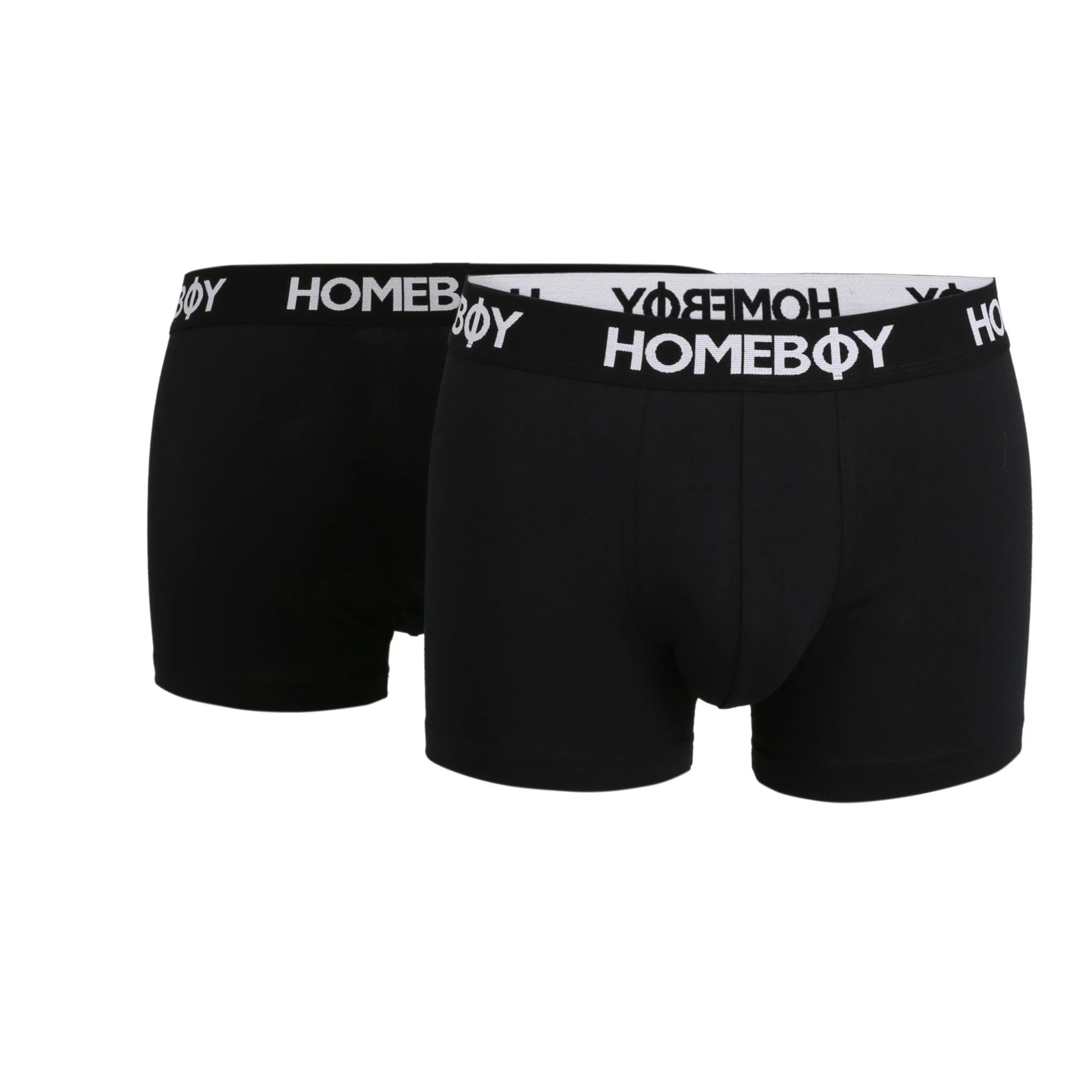 Sehr schöne und sportliche Boxershorts / Trunks der Marke HOMEBOY im Doppelpack. Durch den elastischen Softbund, die hochwertige Baumwollmischung und den offenen Beinabschluss ist diese körpernahe Unterhose sehr bequem zu tragen und ein Must-Have für dein tägliches Wohlbefinden. Der farblich abgesetzte Bund mit Logo-Prägung rundet das Bild ideal ab. Eng anliegend aber trotzdem nicht einengend!
