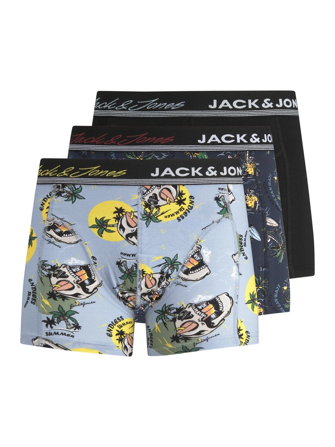 JACK & JONES Herren 3er Pack Boxershorts JACRYDER SKULL TRUNKS 12210095 3 PACK LN TRUNKS Unterhose