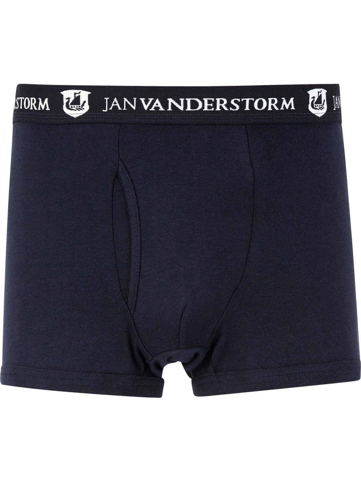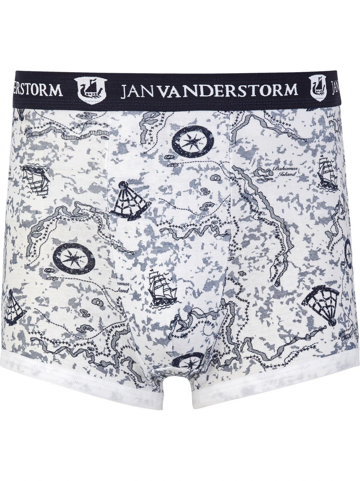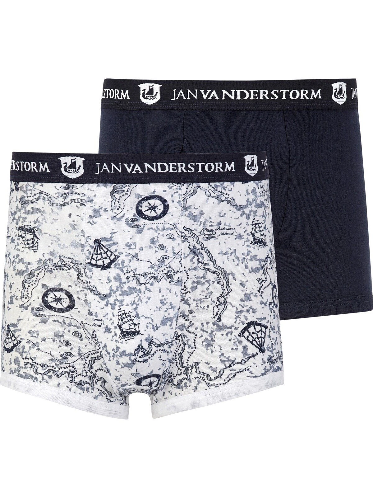 Der 2er-Pack Retropants TAPSO überzeugt gleich doppelt durch seine Vielseitigkeit: Illustrativer Landkartendruck einerseits und die unifarbene Variante andererseits machen TAPSO universell einsetzbar. Was an TAPSO besonders ins Auge fällt? Der elastische Bund mit eingewebten Wikingerwappen und JAN-VANDERSTORM-Schriftzügen. Retropants sind übrigens besonders tragefreundlich, weil sie angenehm körpernah sitzen und gern jede Bewegung mitmachen. Comfort Fit. 100% Baumwolle. Maschinenwäsche.