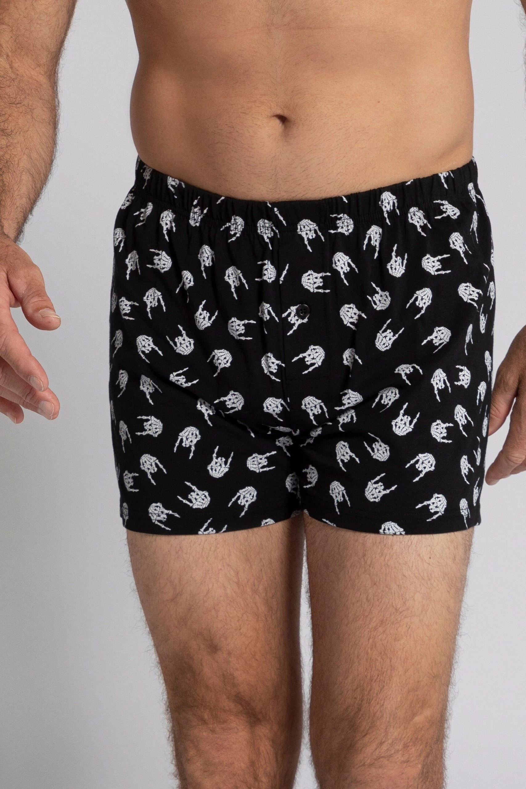 Boxershorts im 2er-Pack, 1x mit Knochenhand-Druck, 1x uni. Elastikbund.