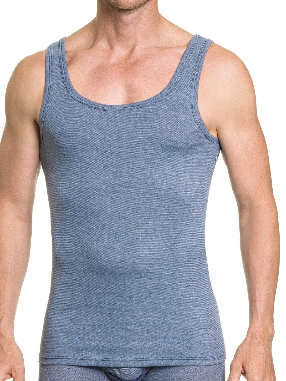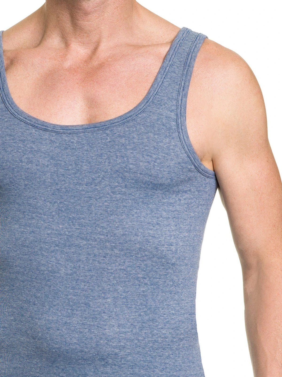 2er Sparpack Herren Unterhemd von der Marke Kumpf Body Fashion aus der Serie Feinripp Jeans. Besondere Merkmale des Artikels sind im Doppelpack, ärmelloses Unterhemd, Ringel-Optik, breite Träger und hoher Tragekomfort, ohne zu kratzen. Tradition und Innovation. Hochwertige Verarbeitung und ausgezeichnete Qualität vereint in zeitloser Basic Wäsche das ist Kumpf Body Fashion für die Männerwelt