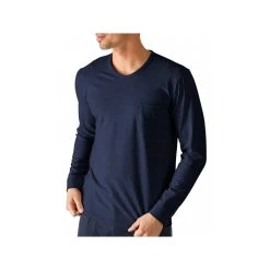 Der Pyjama in schönem blau von Mey vereint Komfort mit stylischem Aussehen.