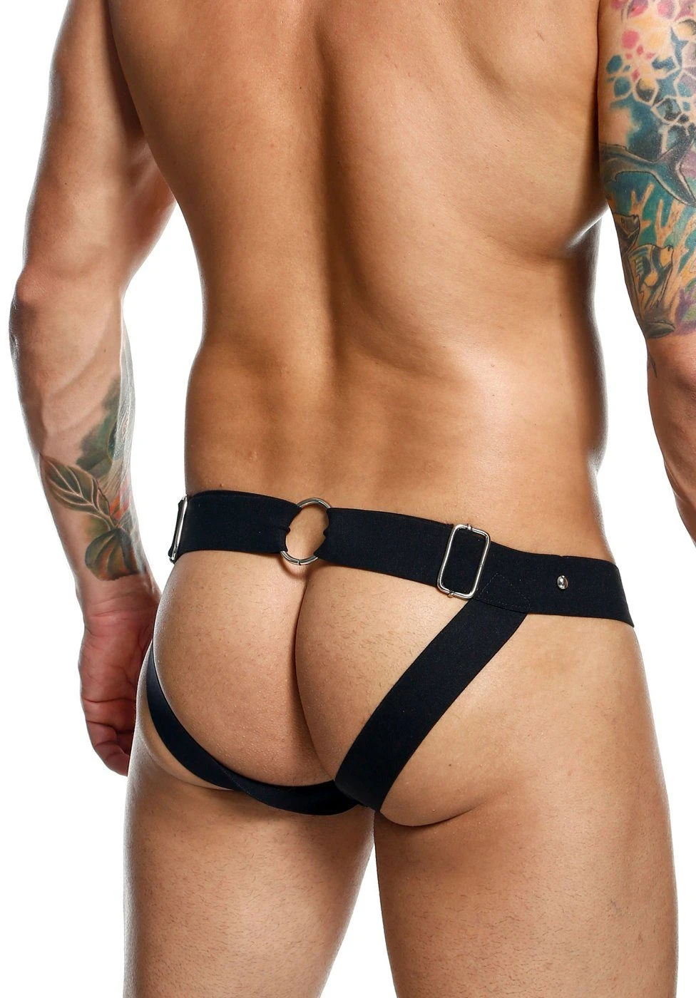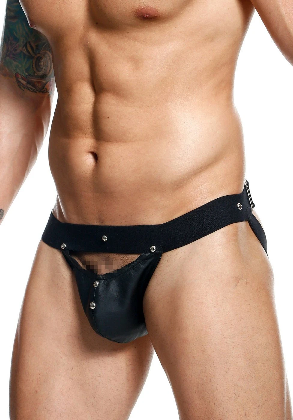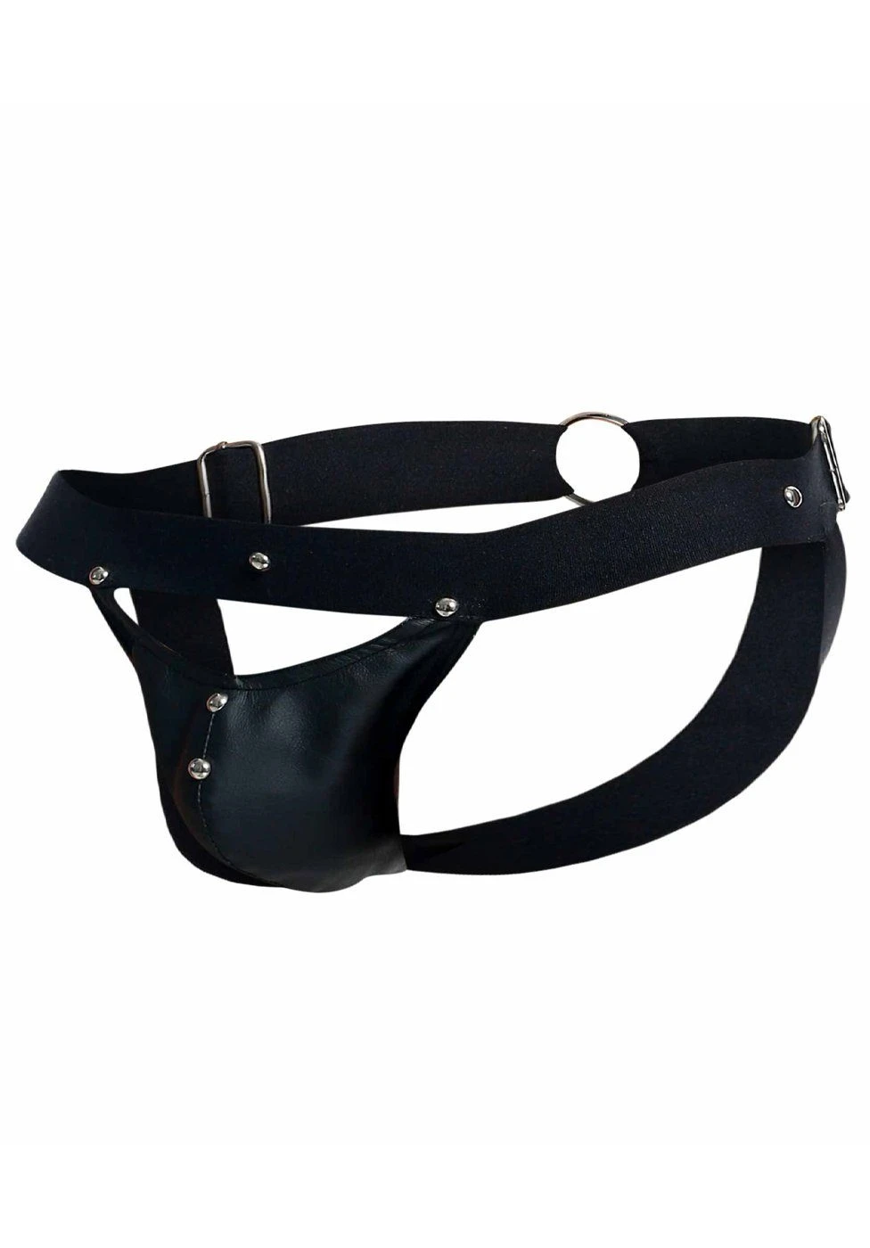 DNGEON Peakaboo Jock – Schwarzer Stahl-Kunstleder-Jockstrap