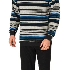 Herren Frottee Schlafanzug langarm mit Bündchen in gestreifter Optik – auch in Übergrößen – 222 101 93 751