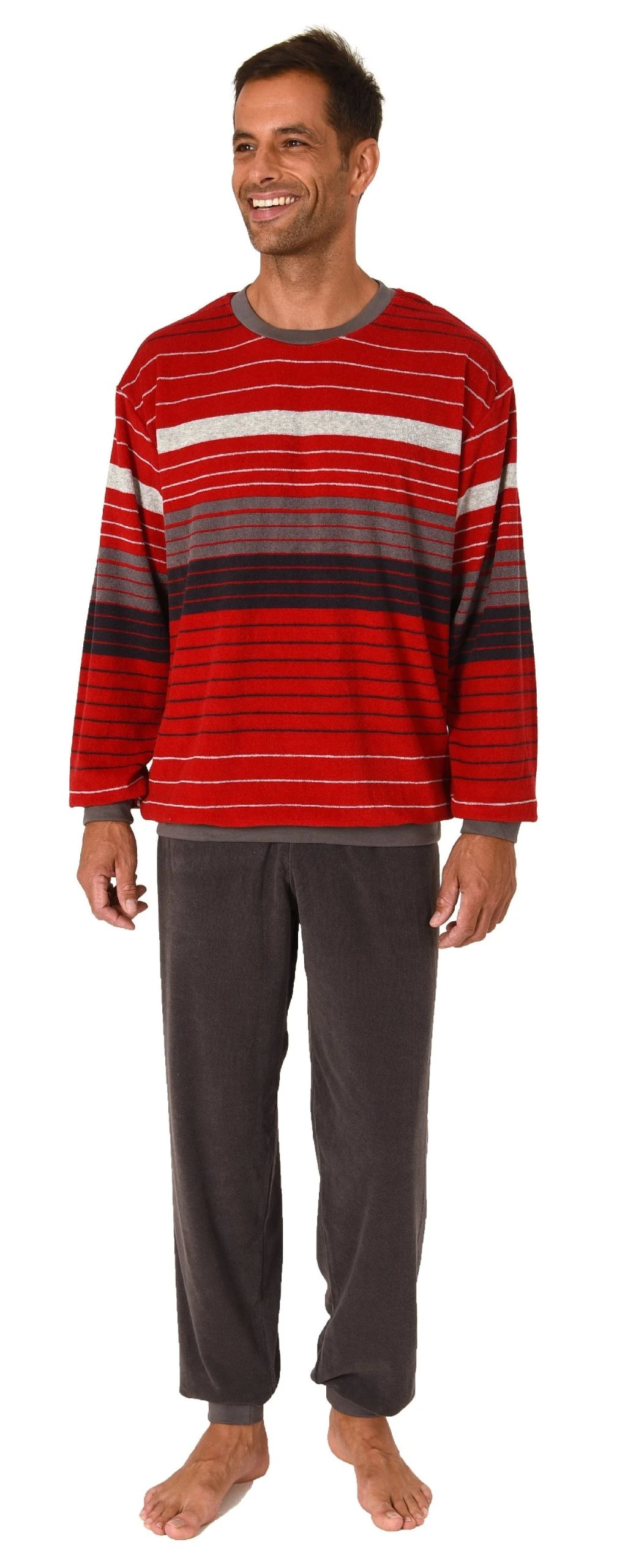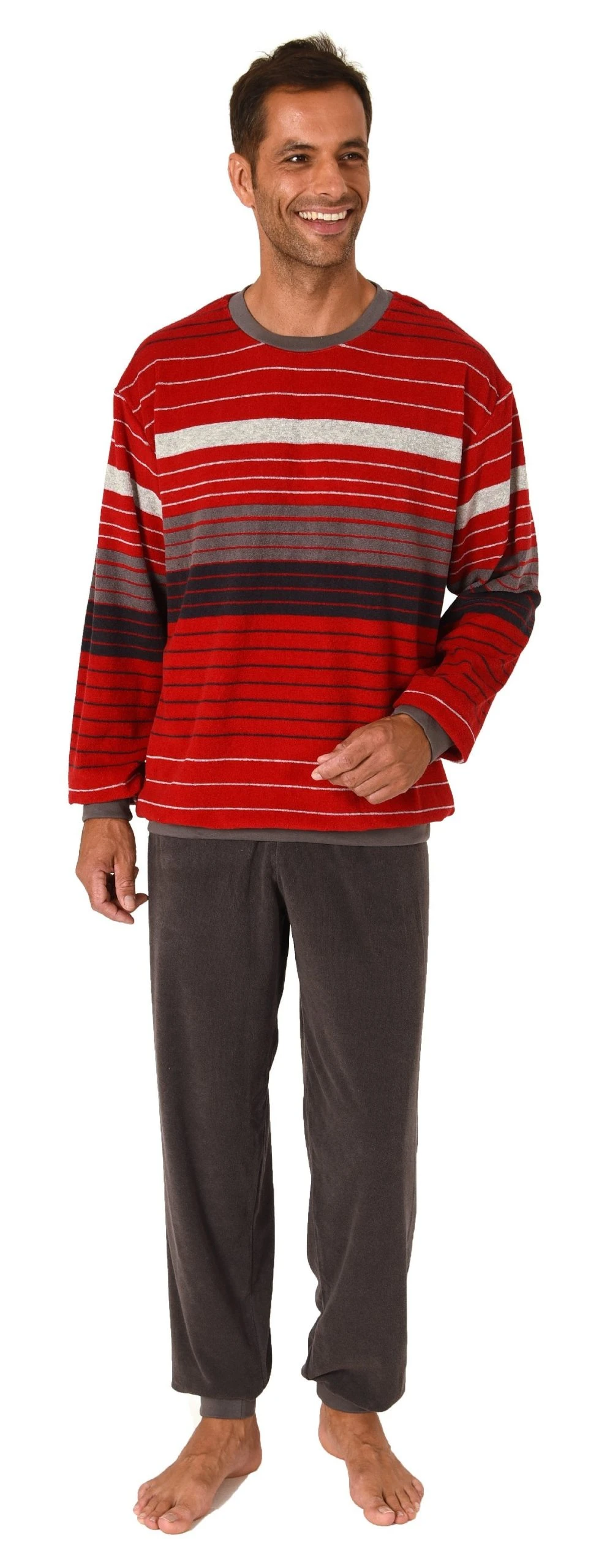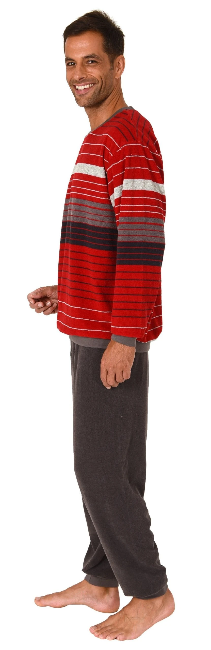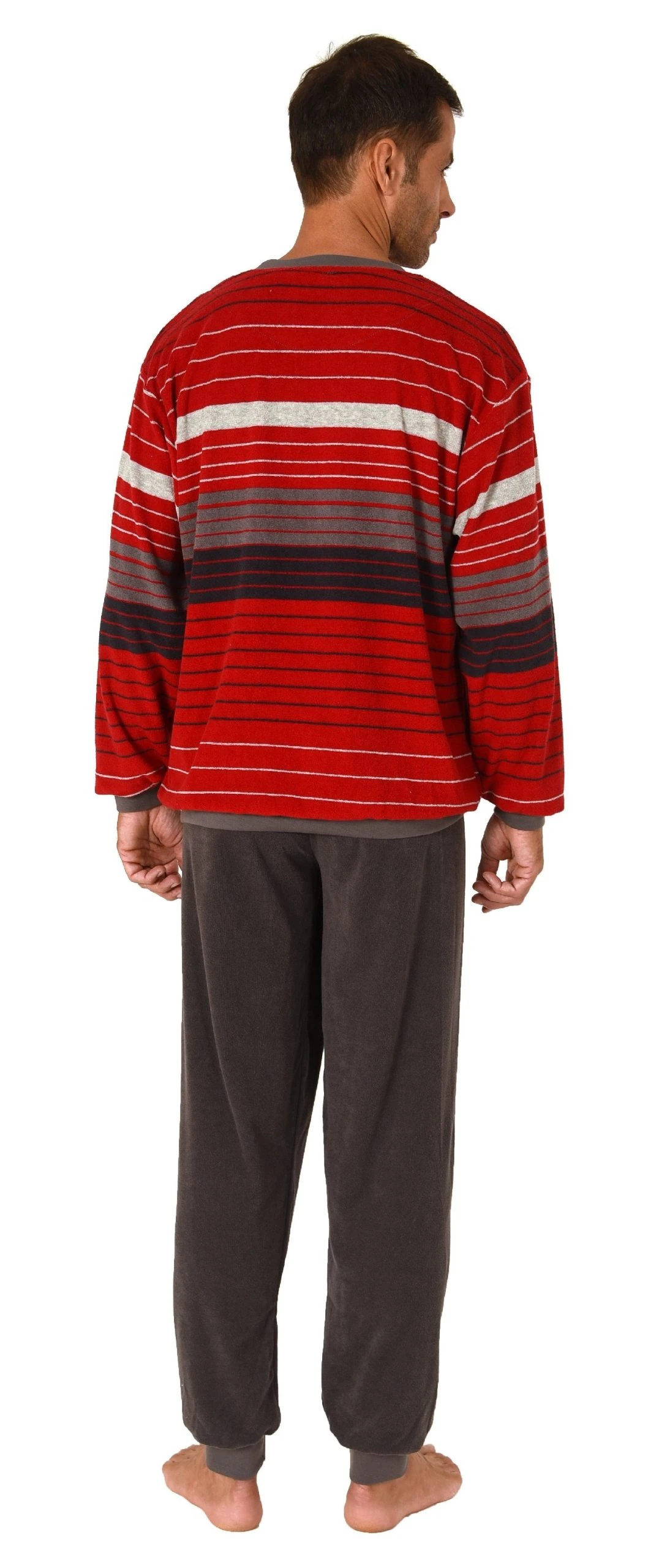Herren Frottee Schlafanzug Pyjama langarm mit Bündchen in Streifen-Look