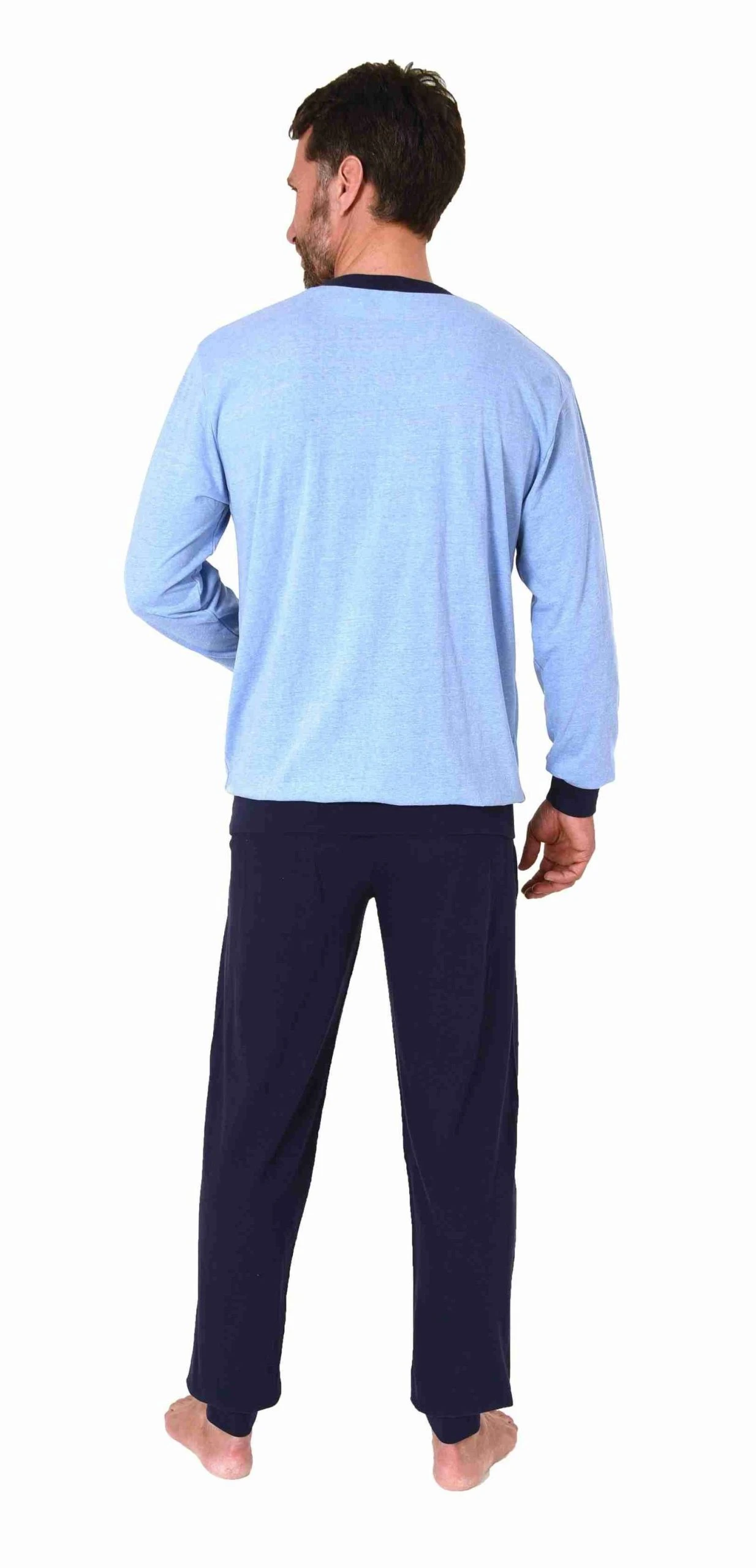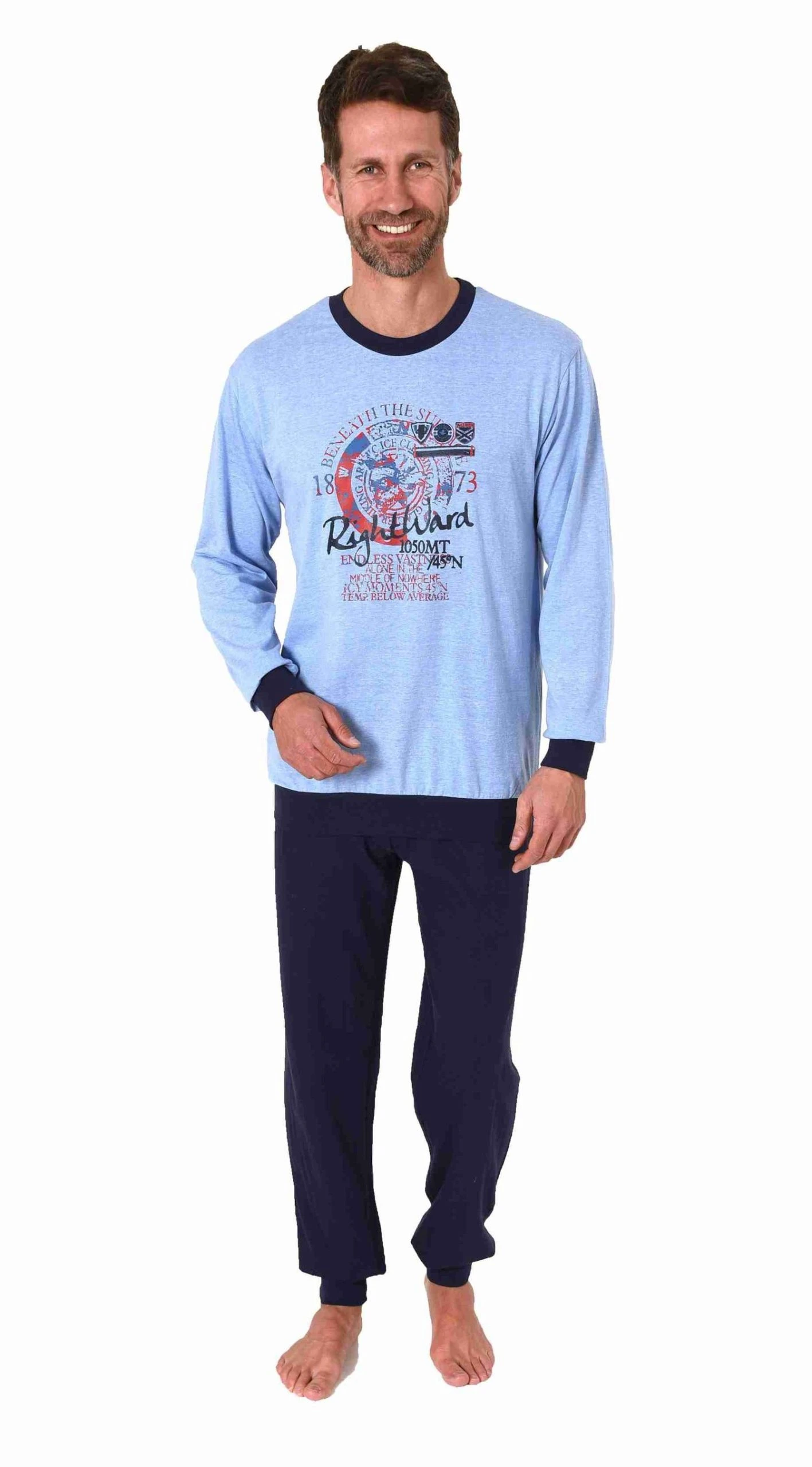 Herren langarm Schlafanzug Pyjama mit Bündchen in tollen Farben und mit Frontprint