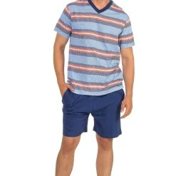 Herren Pyjama Shorty kurzarm Schlafanzug in toller Streifenoptik – 102 105 90 778