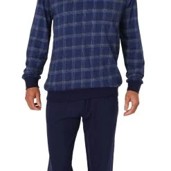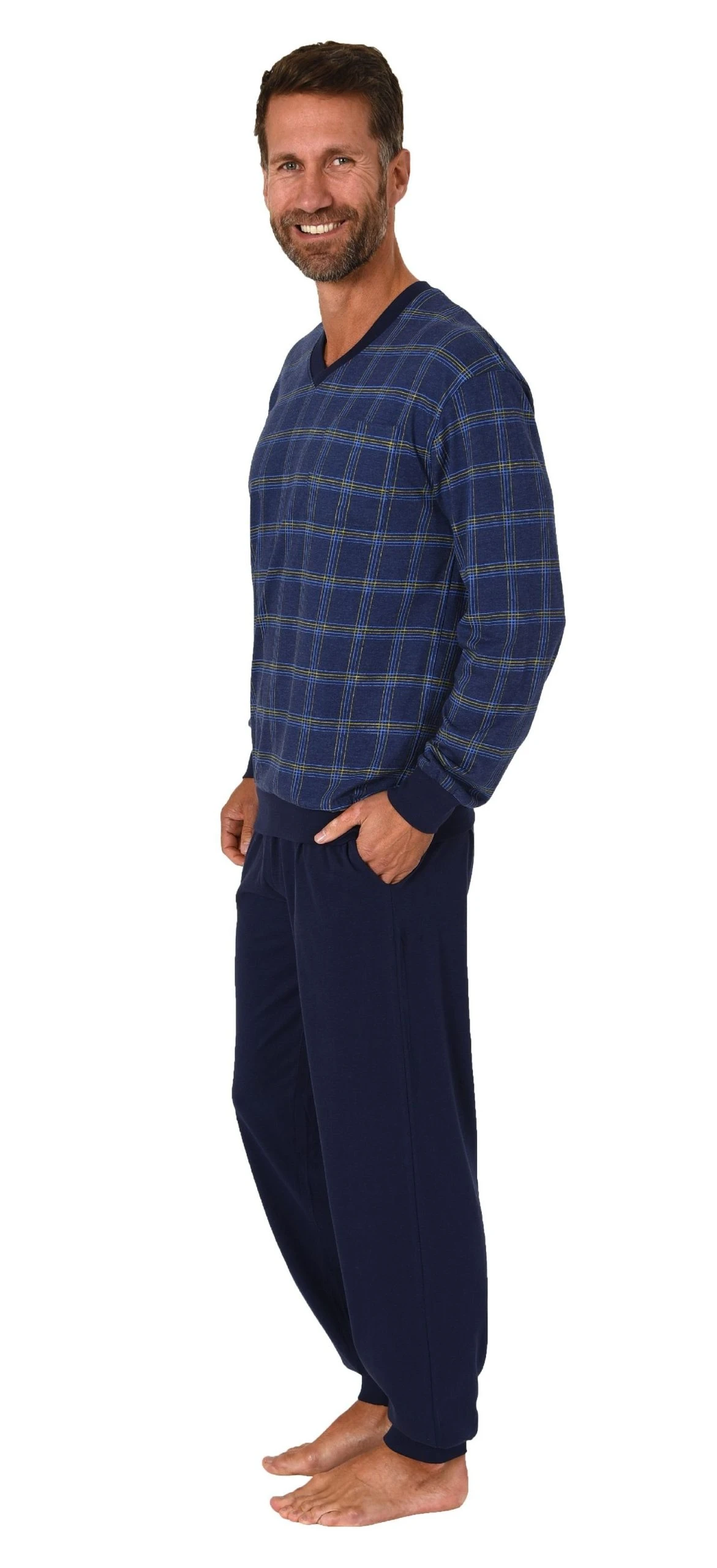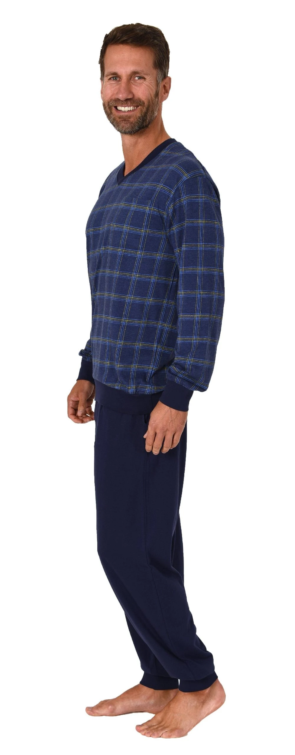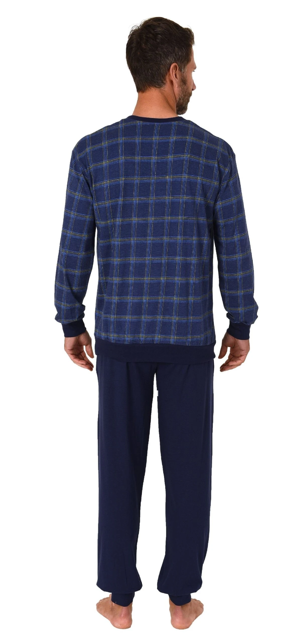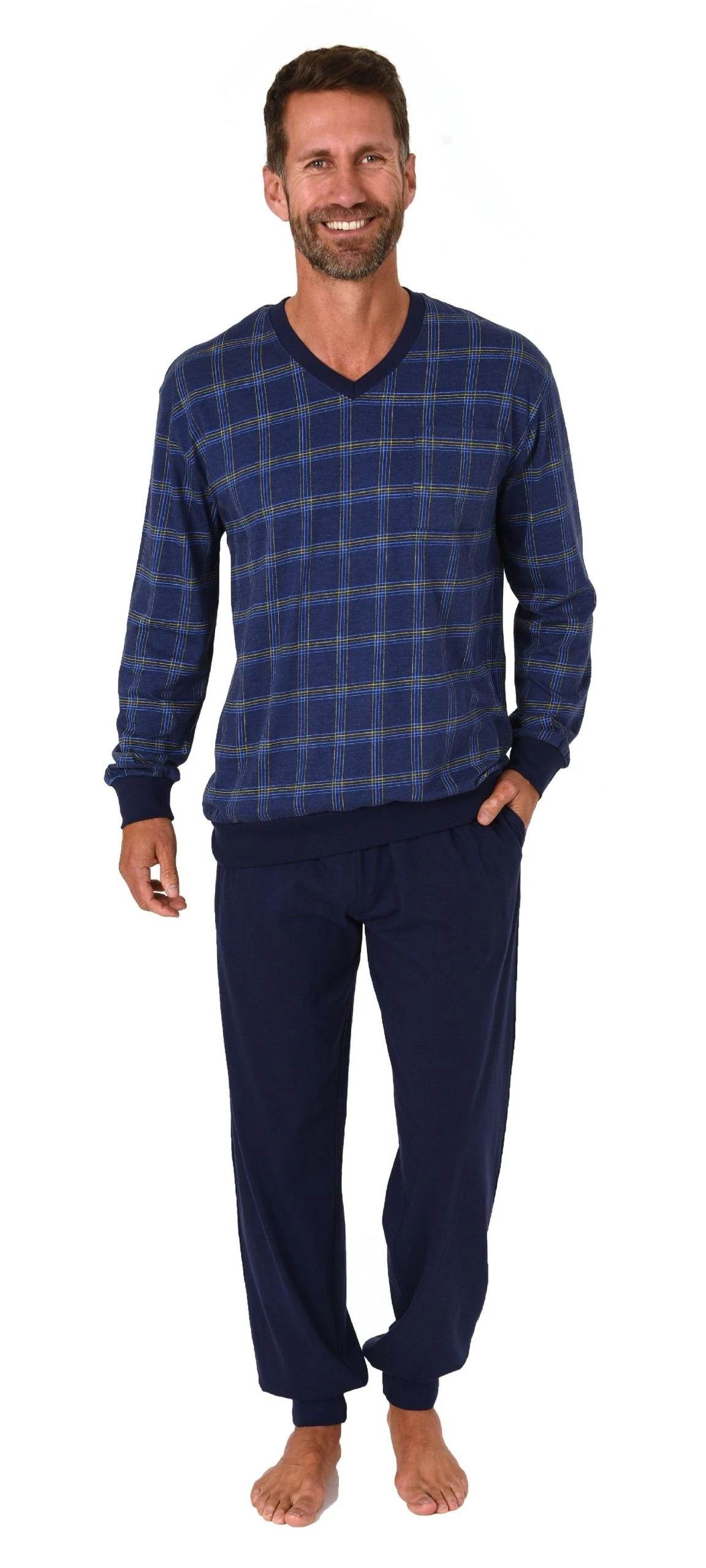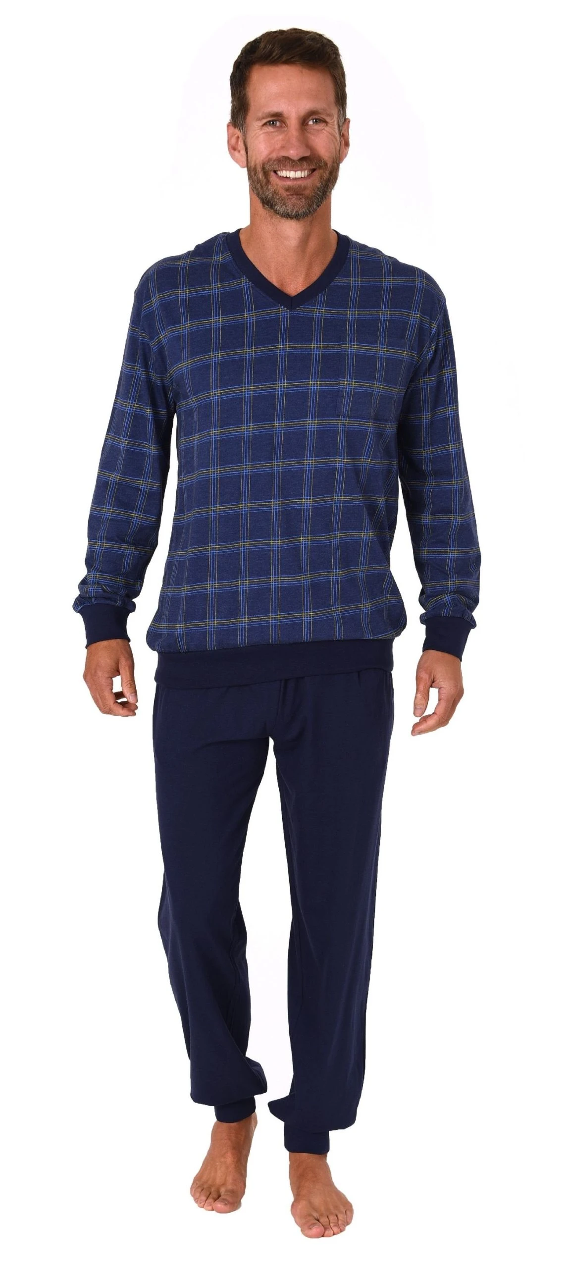 Herren Schlafanzug langarm Pyjama mit Bündchen und karierten Oberteil – 122 101 90 445