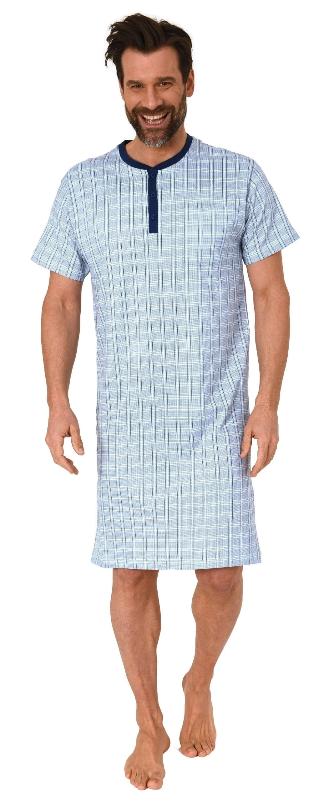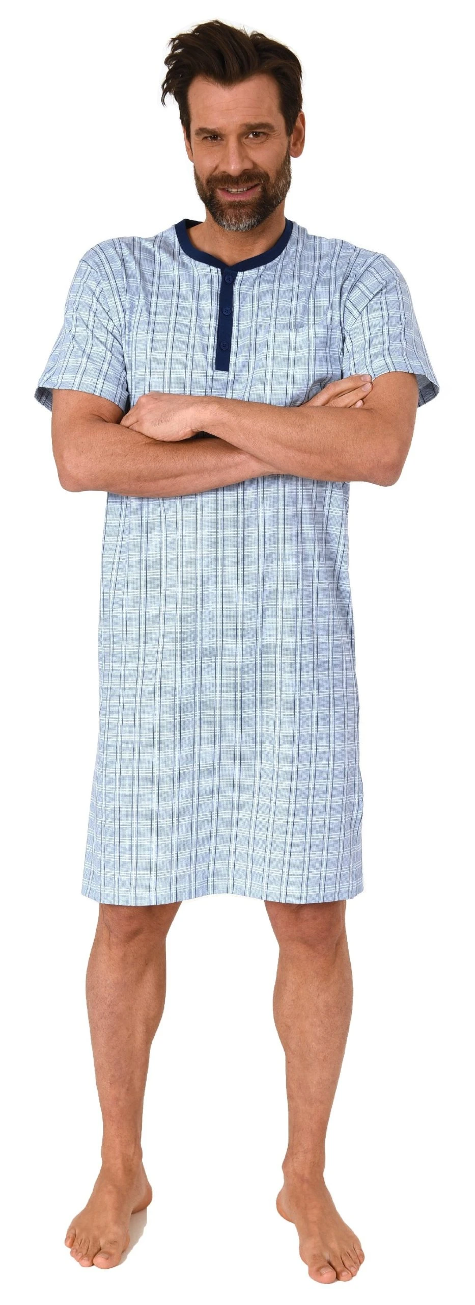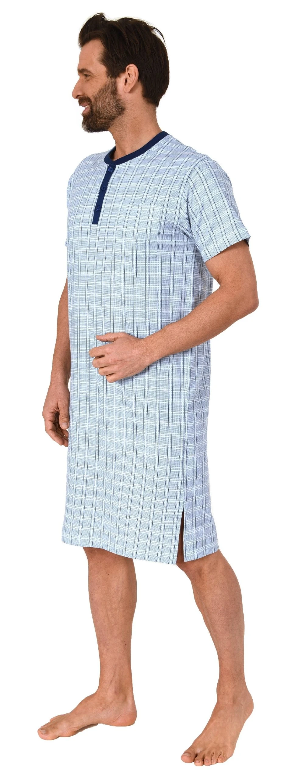 Herren kurzarm Nachthemd mit Knopfleiste am Hals – auch in Übergrössen
