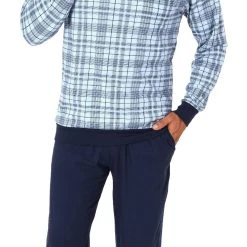 Herren langarm Schlafanzug mit Bündchen aus Jersey und karierten Pyjama Oberteil
