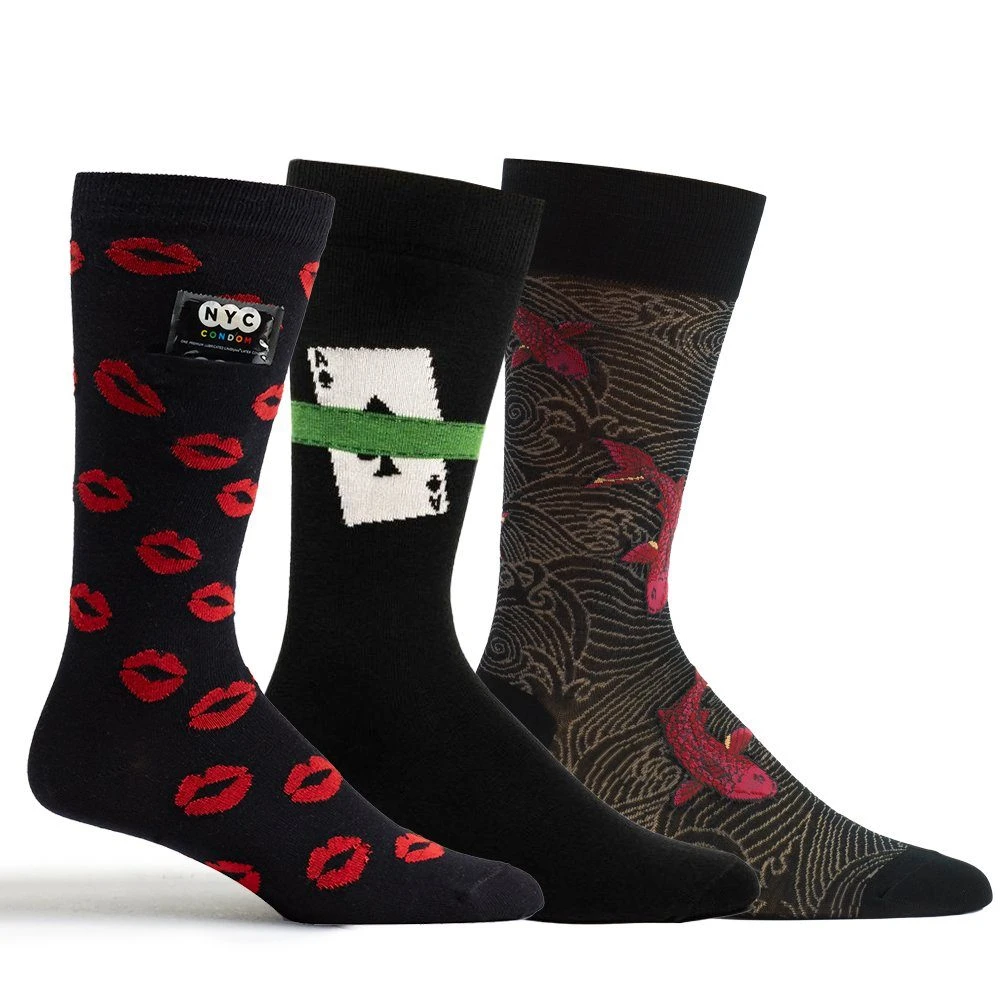 Von funky bis lässig und überall dazwischen! Diese Socken sind wie nichts, was Sie jemals zuvor gesehen haben. Unsere verspielten Muster sind hochmodisch und humorvoll. Jedes Design ist eine Sockeninnovation, die einzigartig ist! Die Safe Sock hat eine eingebaute Tasche und der Drifting Koi ist eine hochwertige Nylonsocke aus Japan. Klassiker auf die nächste Stufe gebracht.