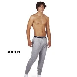 Qotton Pyjama Qotton Herren Jogger Schlafanzugset Grau Hose + Tshirt Aus Bester Baumwolle (1 Tlg., Hose + Tshirt)
