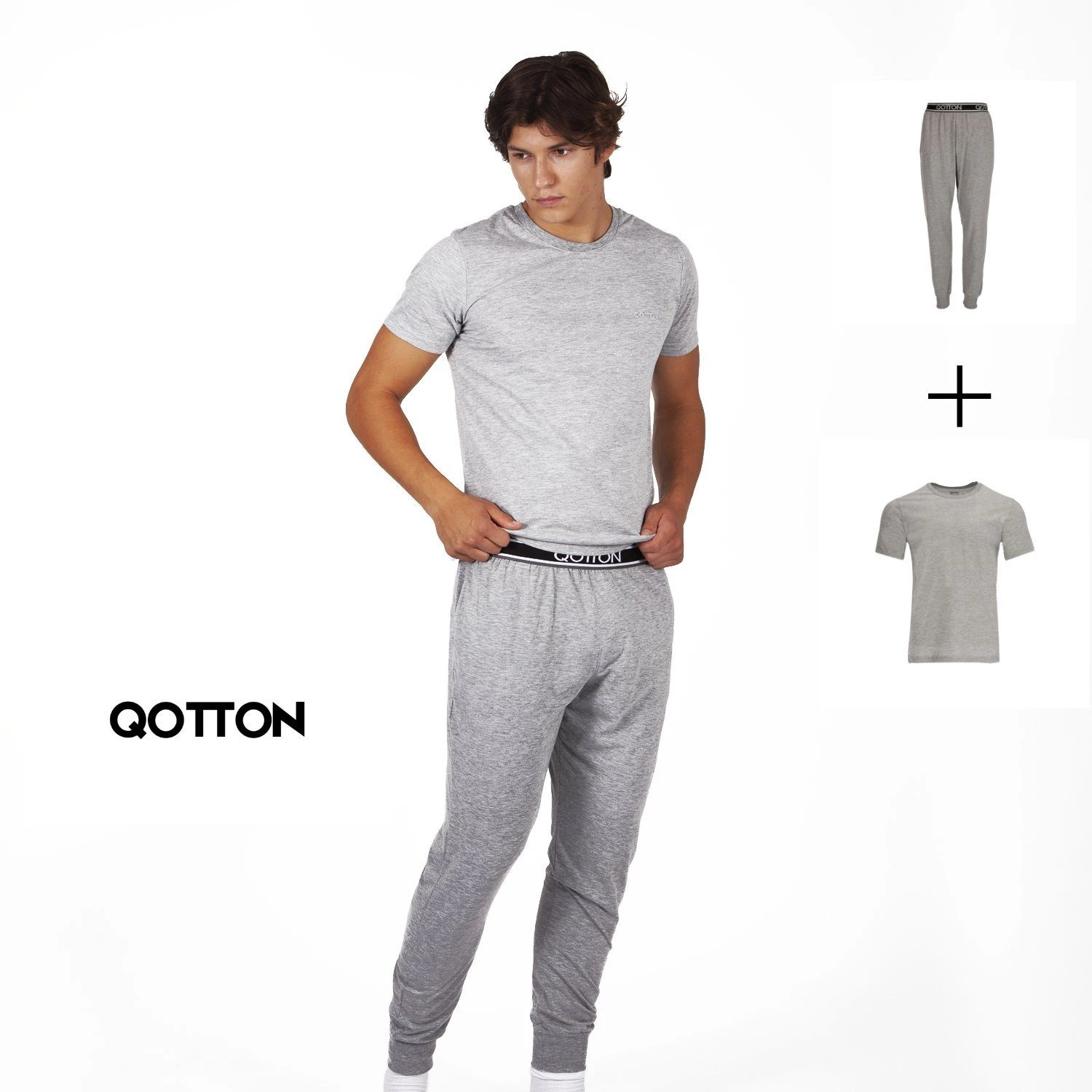 Qotton Pyjama Qotton Herren Jogger Schlafanzugset Grau Hose + Tshirt Aus Bester Baumwolle (1 Tlg., Hose + Tshirt)