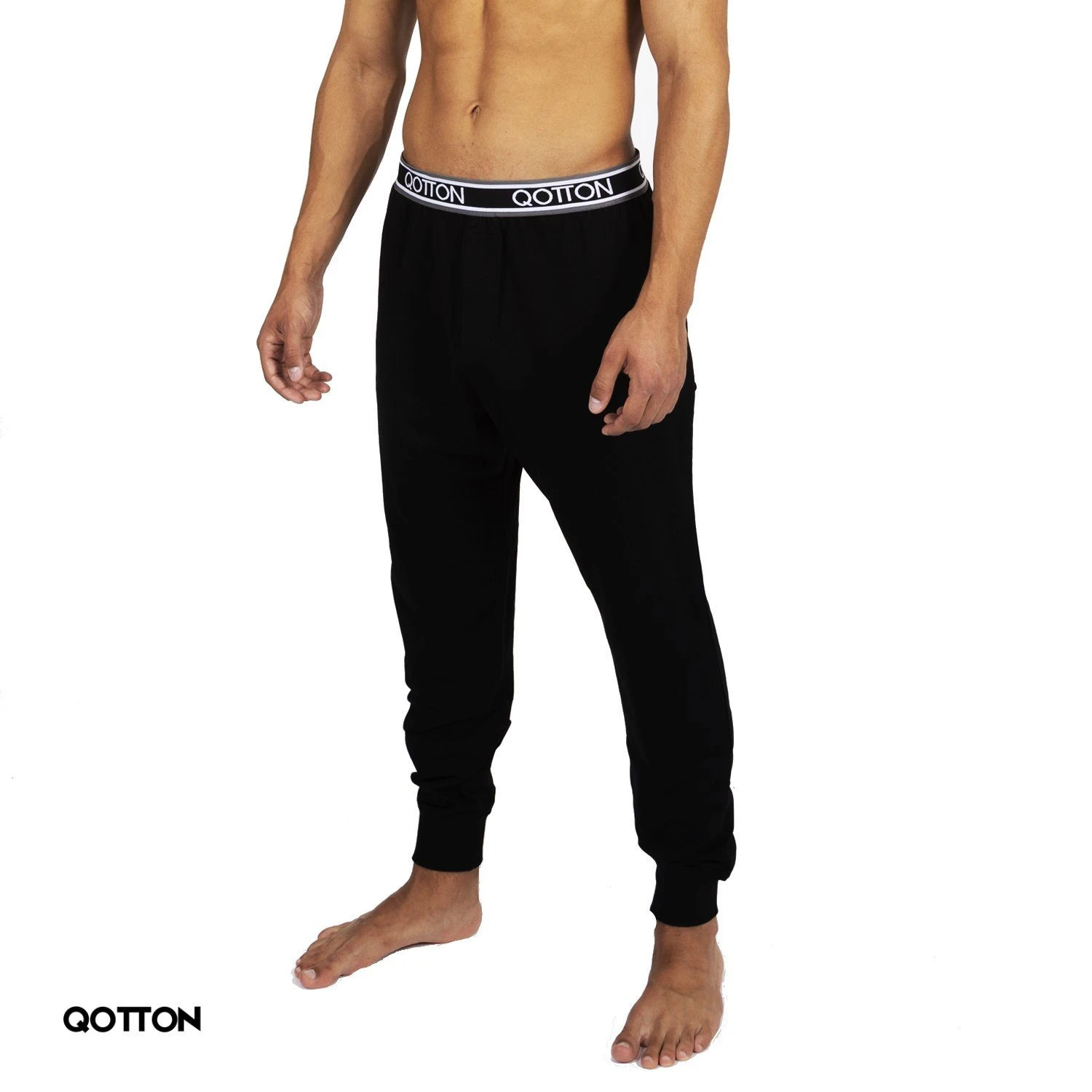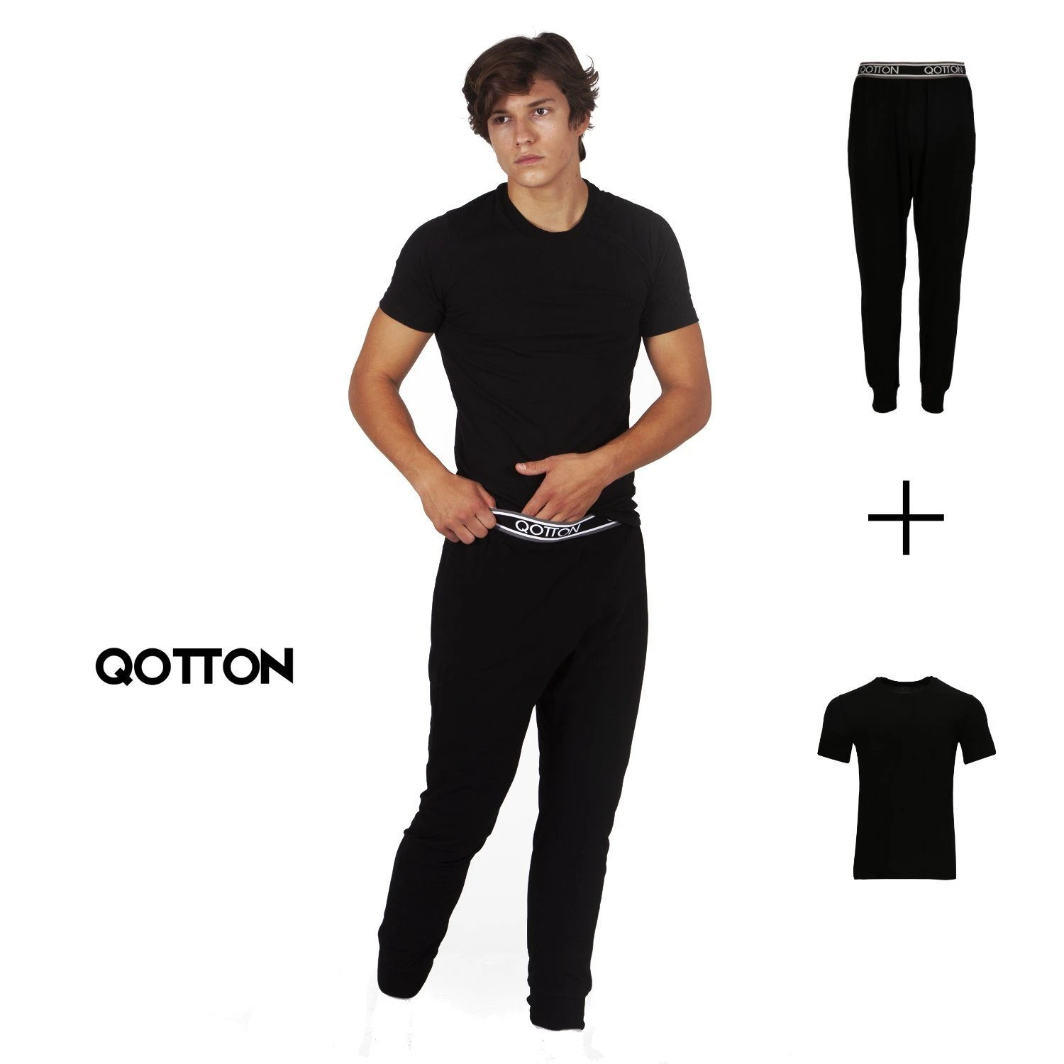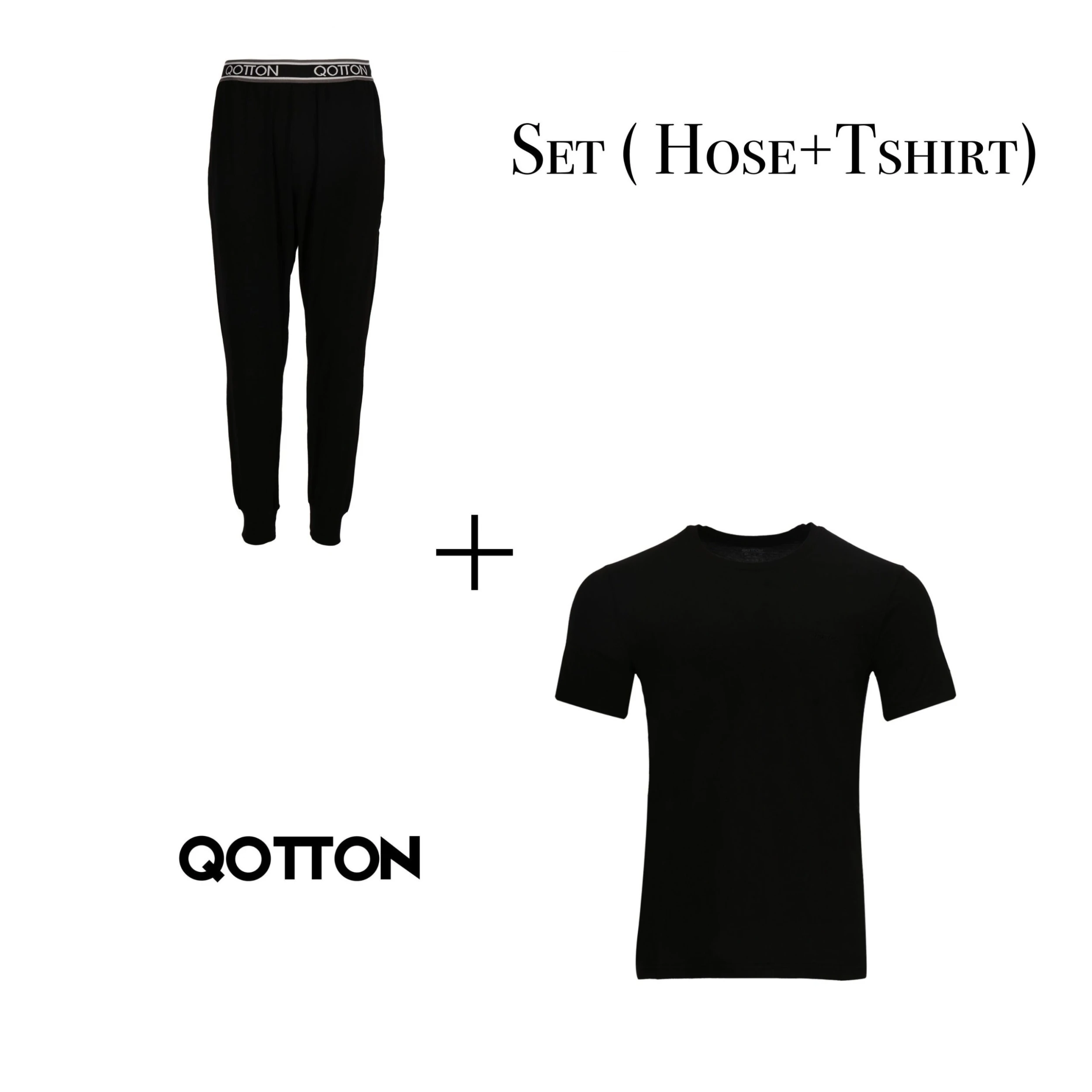 Qotton Pyjama Qotton Herren Jogger Schlafanzugset Schwarz Hose + Tshirt Aus Bester Baumwolle (Hose + Tshirt, 1 Tlg)