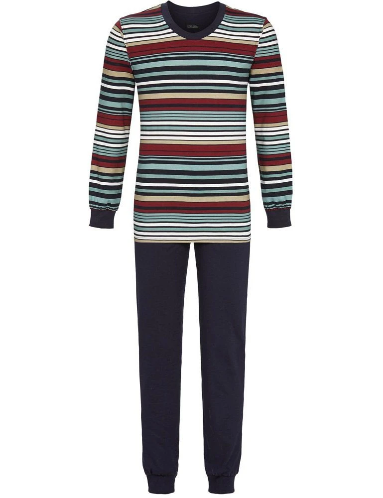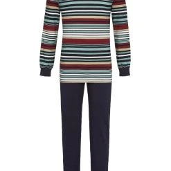 Ringella Pyjama Langer Herren Schlafanzug Mit Streifen, 1541211 – Marine, Langarm Nachtwäsche Loungewear (2 Tlg)