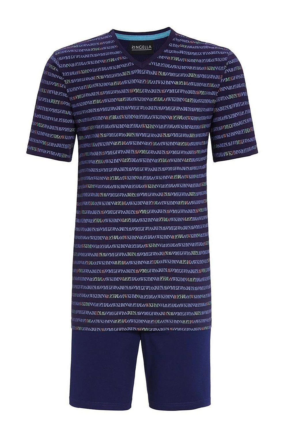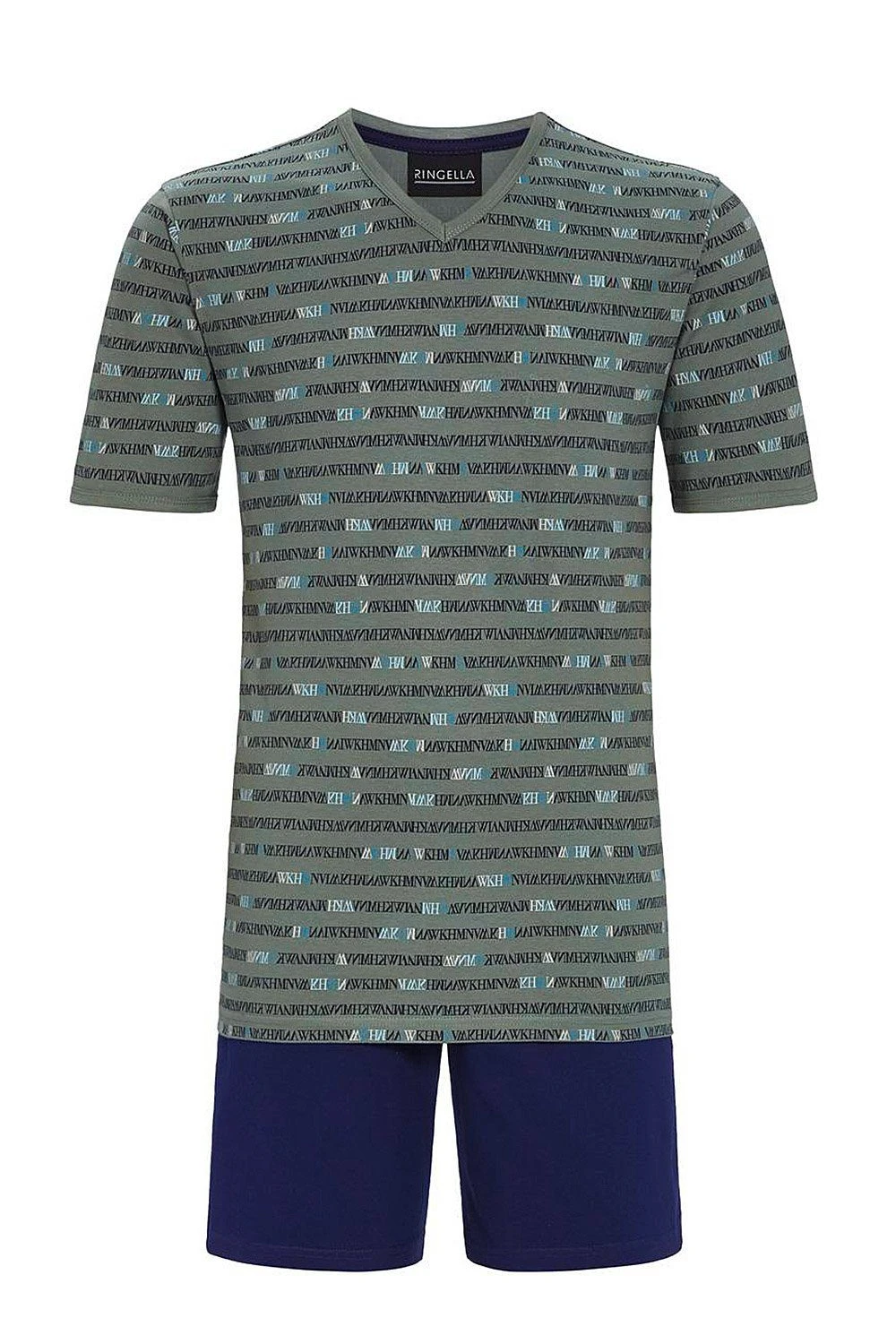 Herren Shorty / Schlafanzug / Pyjama kurz von Ringella Men / Artikeldetails: / – Herren Shorty / kurzer Pyjama / Zweiteiler von Ringella / – Oberteil allover mit Buchstaben gemustert, mit V-Ausschnitt / – Rückenlänge ca. 74 cm / Farbvarianten: / – night (286): Dunkelblau / – lorbeer (551): Khaki / – unifarbene Hose in Dunkelblau mit stoffüberzogenem Gummibund / – Seitenlänge inkl. Bund ca. 47 cm / – hautsympathisch und weich im Griff / – Material: 100% Baumwolle, strapazierfähig und reißfest / – hautsympathisches, weiches Material für höchsten Tragekomfort / – Pflegehinweis: bis 40° Feinwäsche empfohlen, von links waschen und bügeln, feucht in Form ziehen / Ringella – Mode zum Wohlfühlen!