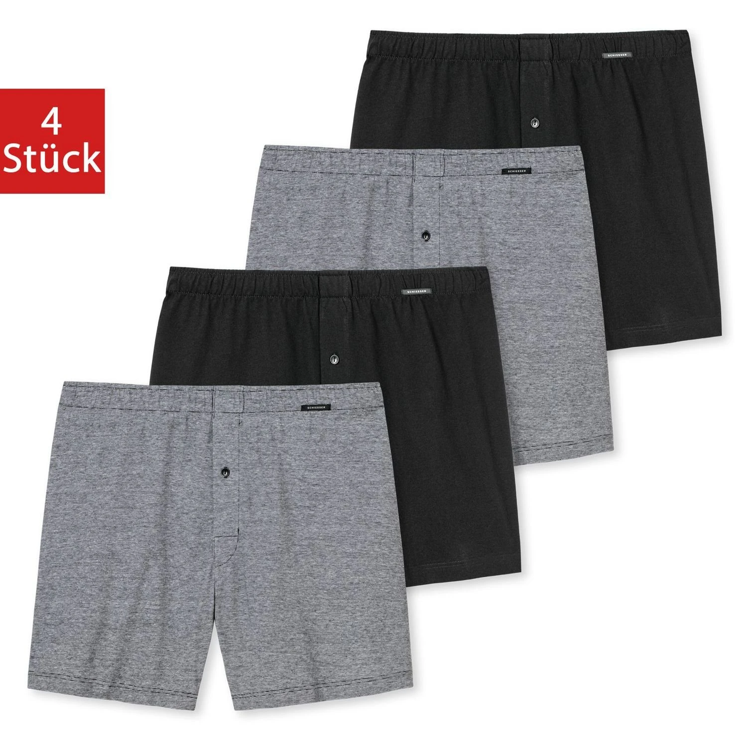 Schiesser Boxershorts Essentials (4-St) Mit Eingriff, Knopf, Logo, Weiter Schnitt, Im 4er Pack