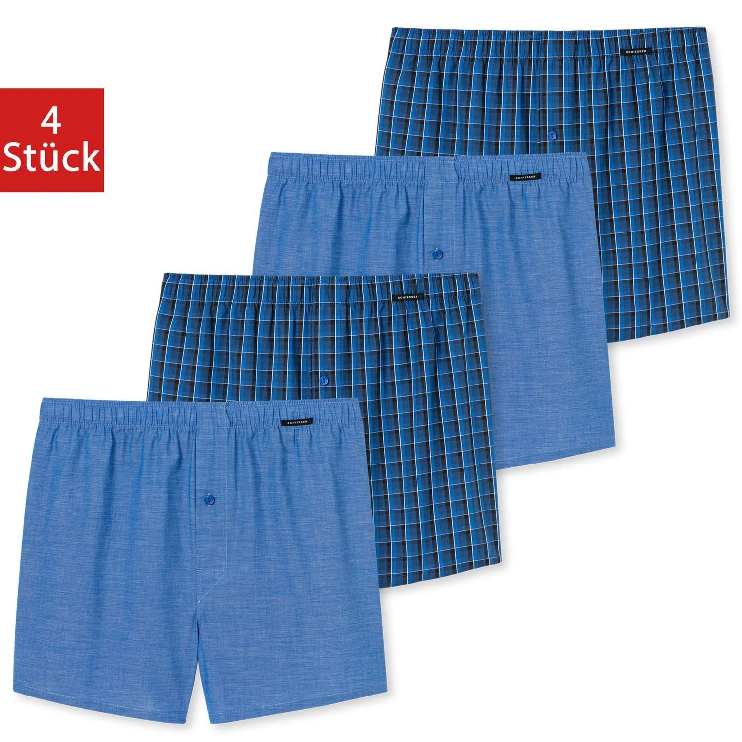 Schiesser Boxershorts Essentials (4-St) Webboxer Mit Funktionaler Knopfleiste Im 4er Pack