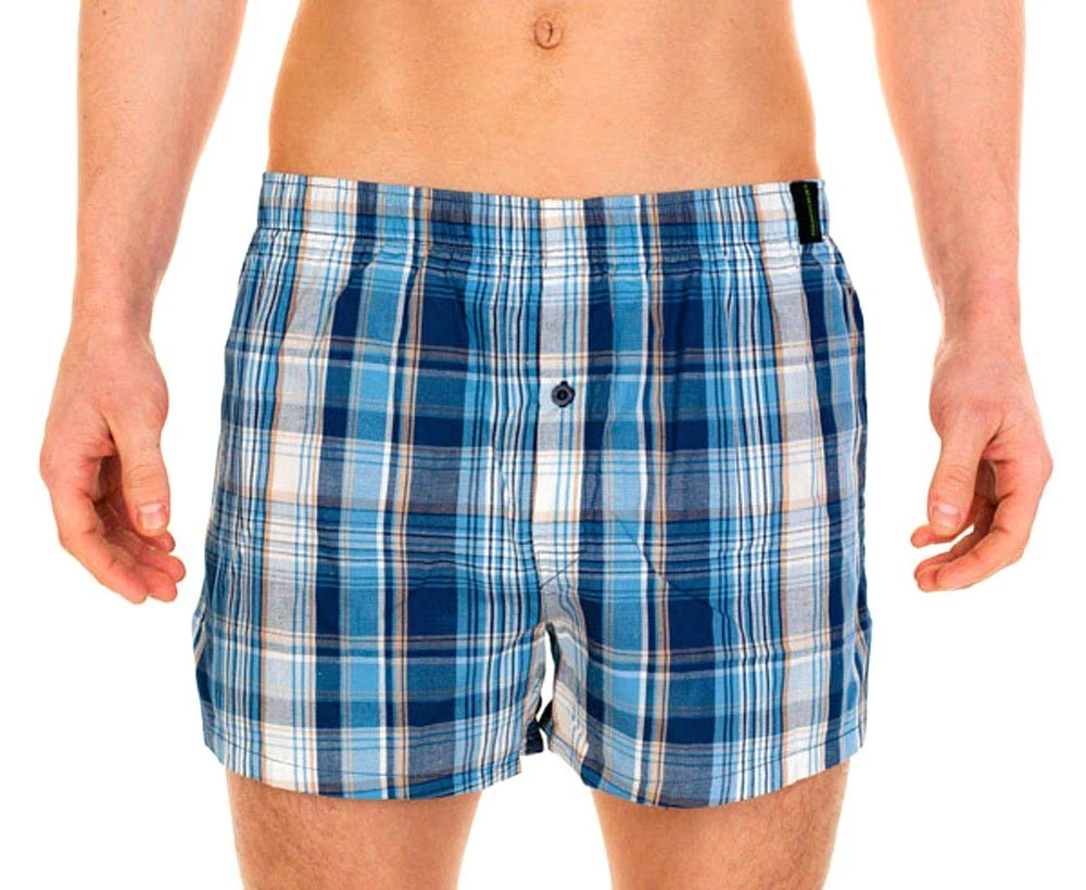 Trendige Boxershorts aus Webstoff mit Seitenschlitzen. Eingriff: Knopfleiste mit einem 1 Knopf.