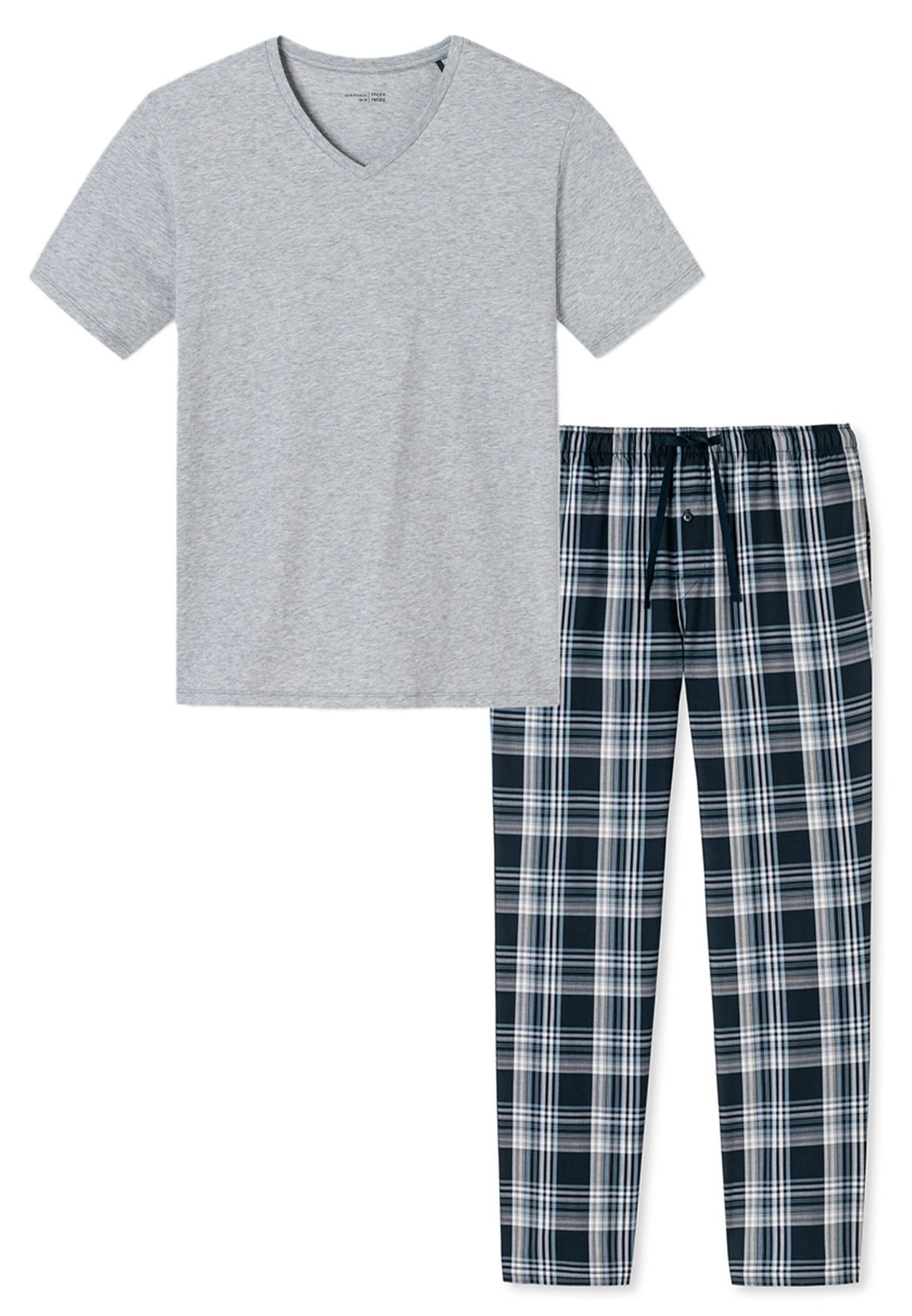 Schiesser Pyjama Mix (Set, 2 Tlg) Schlafanzug – Baumwolle – Kurzarm-Shirt Mit V-Ausschnitt