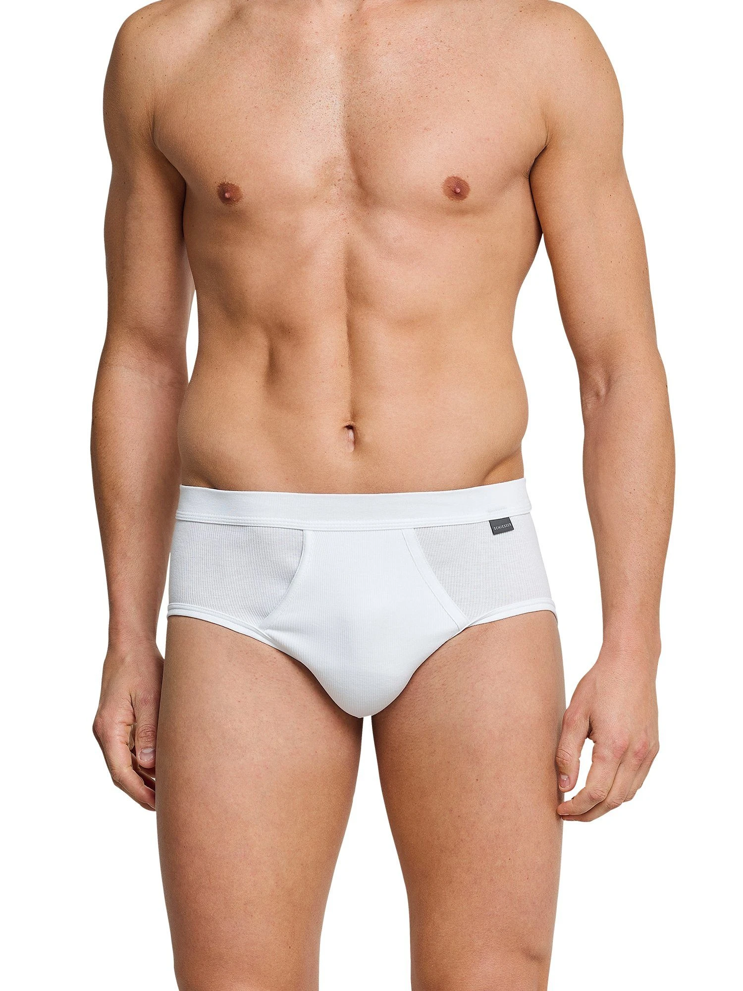 Klassische Wäsche im Doppelpack: Diese beiden, weißen Herren-Sportslips versprechen höchsten Tragekomfort in gewohnt bester SCHIESSER-Qualität. Kerniger Doppelripp schenkt den Slips einen besonders maskulinen Charakter, der in 100% supergekämmter Baumwolle und im Zusammenspiel mit dem bequemen Softbund angenehm weich auf der Haut spürbar wird. Ideal für Herren, die langlebige und strapazierfähige Wäsche im zeitlos-puren Design schätzen.