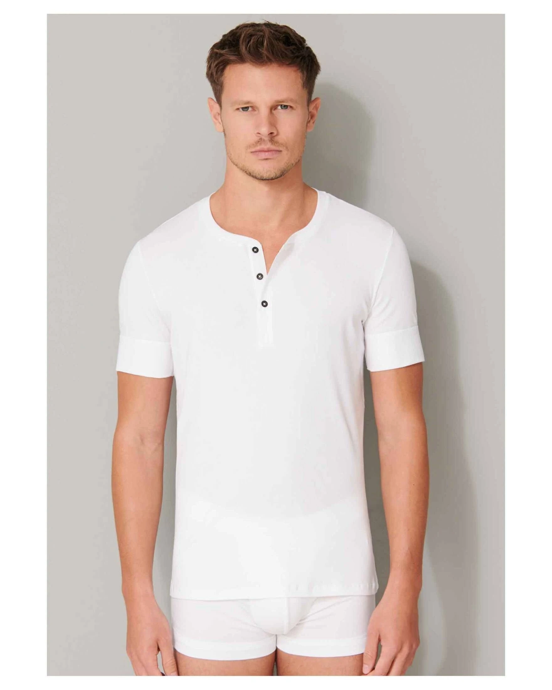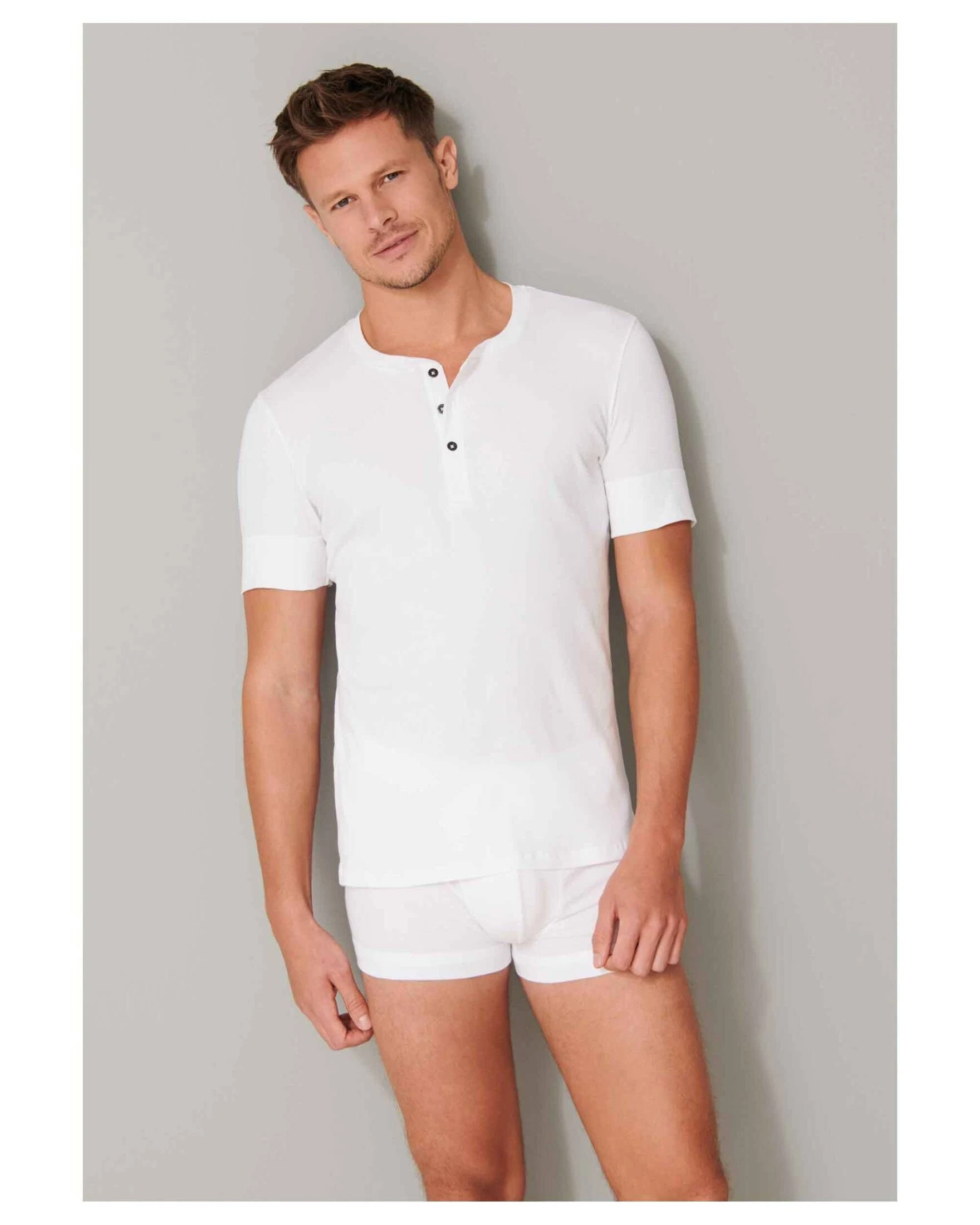Das Shirt Retro Ripp der Marke Schiesser überzeugt mit schöner Doppelripp-Optik und einer trendigen Metall-Knopfleiste. Genau das richtige Shirt zum Layern, sodass du draußen nicht frierst.