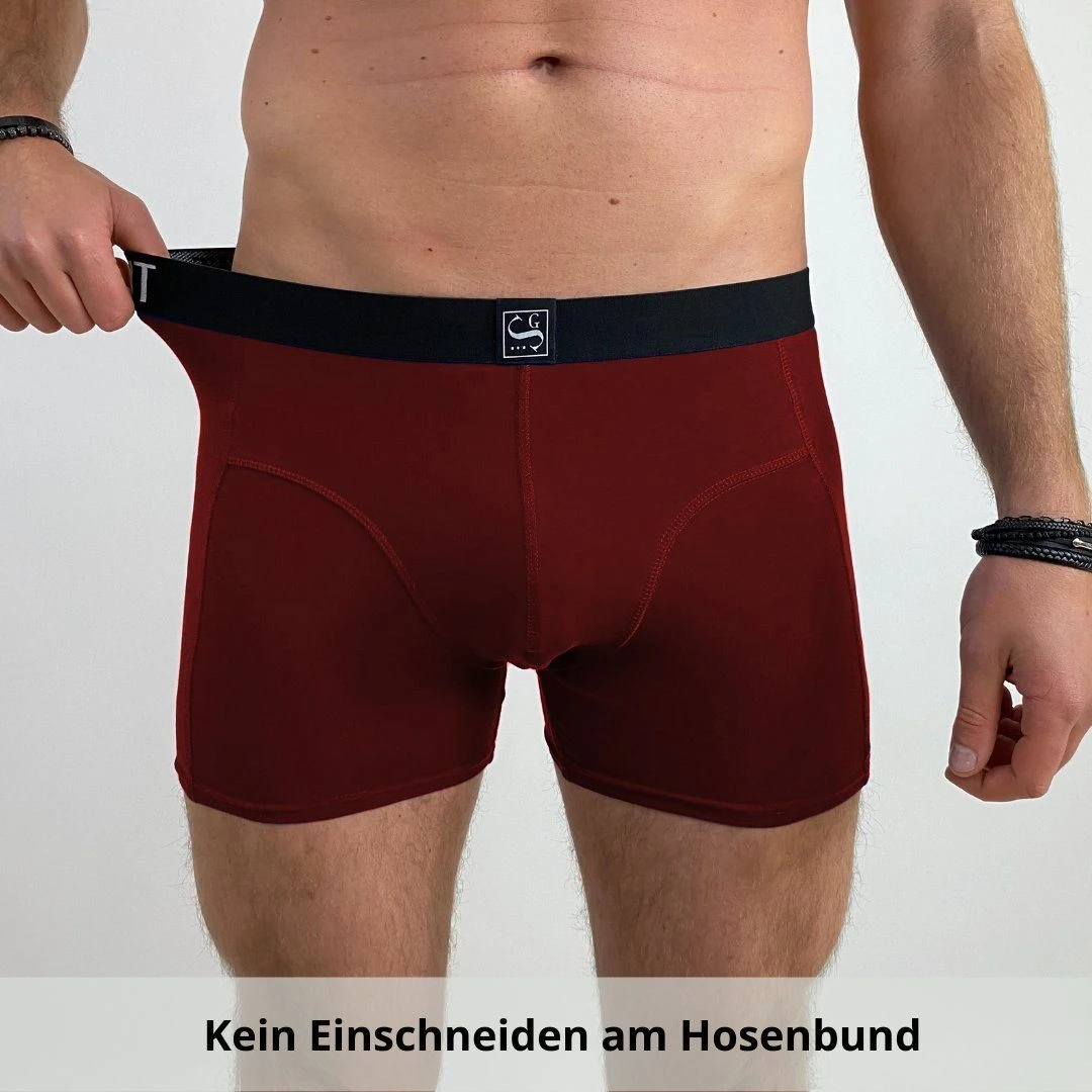 Die Premium-Herren-Boxershorts in Schwarz von Sitzt-Gut sind die perfekte Wahl für jeden Mann, der auf der Suche nach bequemer und hochwertiger Unterwäsche ist. Hergestellt aus weicher Baumwolle und einem kleinen Anteil Elasthan, bieten diese Boxershorts den perfekten Sitz und höchsten Tragekomfort. Das klassische Schwarz-Design sorgt für eine zeitlose Optik und macht diese Boxershorts zu einem Must-Have für jeden Kleiderschrank. Die nahtlose Verarbeitung an den Beinen verhindert unangenehmes Reiben und Scheuern und macht diese Boxershorts auch für sportliche Aktivitäten geeignet. Der elastische Bund mit dem dezenten Sitzt-Gut-Logo sorgt für zusätzlichen Komfort und gibt Halt, ohne dabei einzuengen. Die hochwertige Materialzusammensetzung sorgt für eine langanhaltende Formstabilität und Farbbeständigkeit, selbst nach vielen Waschgängen. Diese Premium-Herren-Boxershorts von Sitzt-Gut sind ideal für Männer, die auf der Suche nach bequemer und langlebiger Unterwäsche sind. Mit ihrem zeitlosen Design und der hochwertigen Verarbeitung sind sie die perfekte Ergänzung für jeden Kleiderschrank. Bestelle jetzt die Premium-Herren-Boxershorts in Schwarz und genieße den perfekten Sitz und höchsten Tragekomfort.