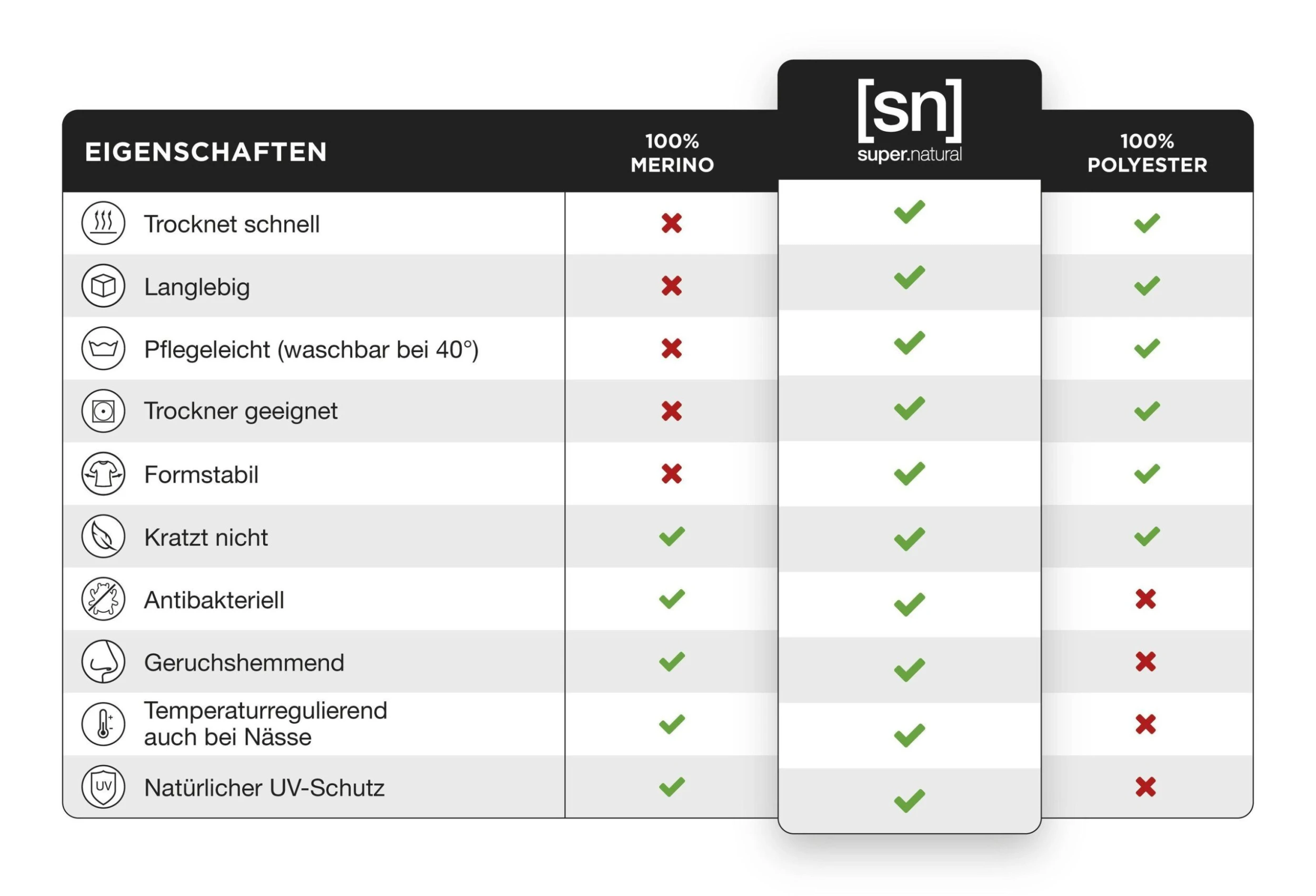 Dank der innovativen super.natural Faser aus 48% Merinowolle und 48% Polyester hält dich die atmungsaktive Boxershort aus 175g Contact Stretch Jersey an kalten Tagen warm und sorgt an warmen Tagen für einen angenehm kühlen Tragekomfort auf deiner Haut – und das ganz ohne zu kratzen.