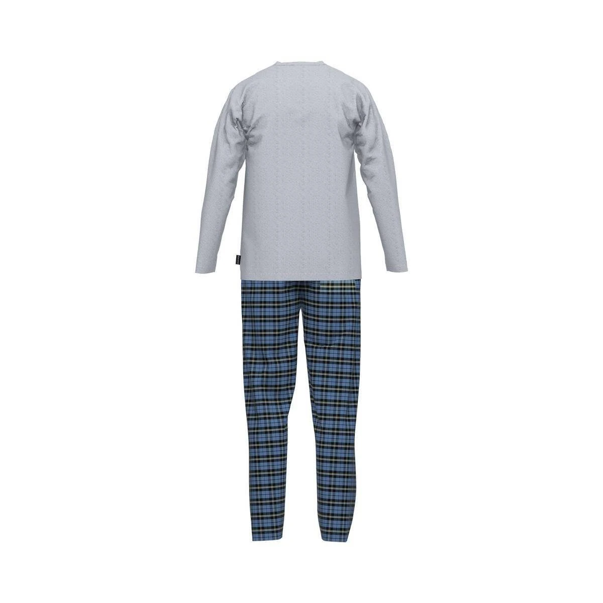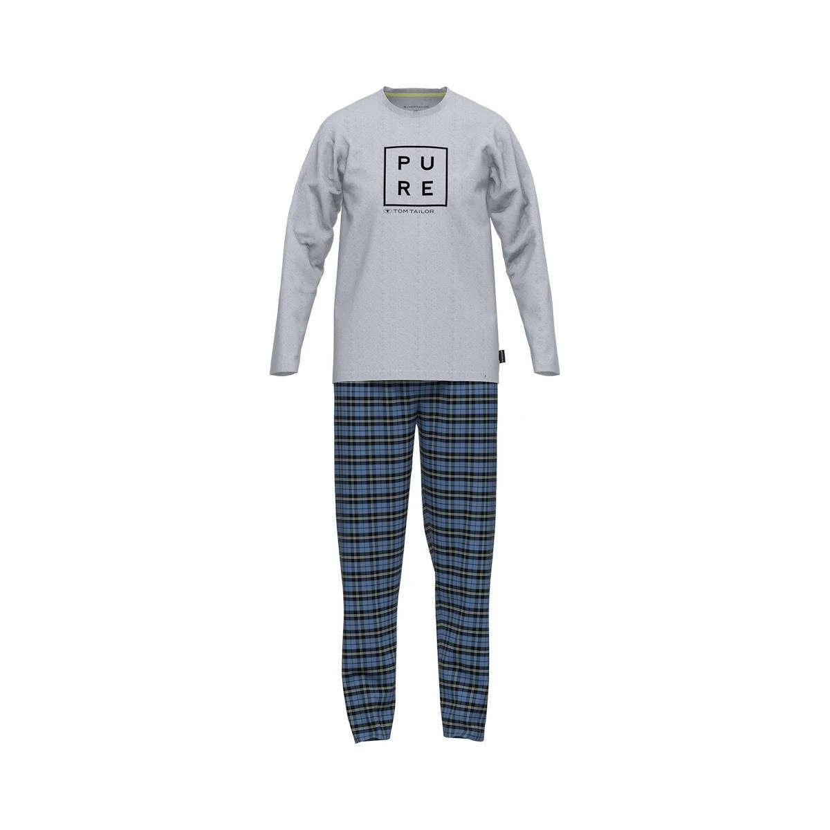 Klassischer 2-teiliger Schlafanzug für Herren von der Marke TOM TAILOR. Langer einfarbiger Schlafanzug mit karierter Hose und Rundhalsausschnitt. Aus angenehmer Baumwoll-Qualität.