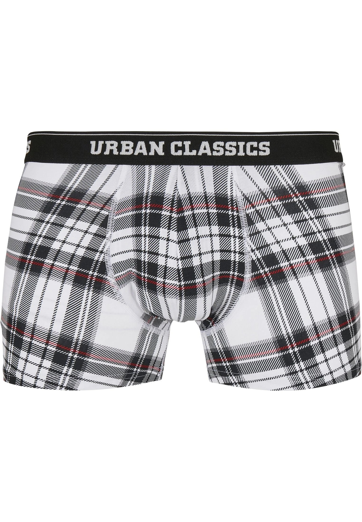 Das Dreierpack an Urban Classics Boxer-Shorts setzt auf schlichte Farben und höchste Funktionalität. Es beinhaltet eine Herren Boxer-Shorts in schlichtem Grau, eine mit durchgängigem Urban Classic Logo-Schriftzug als Alloverprint sowie eine in einem Karomuster in Grau- und Rottönen. Alle drei Boxer-Shorts sind mit einem bequemen Elastikbund samt Urban Classics Logo-Schriftzug ausgestattet. Das Material aus Stretch Jersey garantiert eine angenehme, körpernahe Passform der Urban Classics Unterhosen.