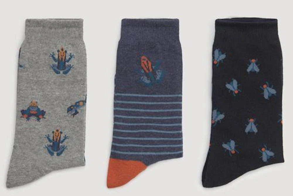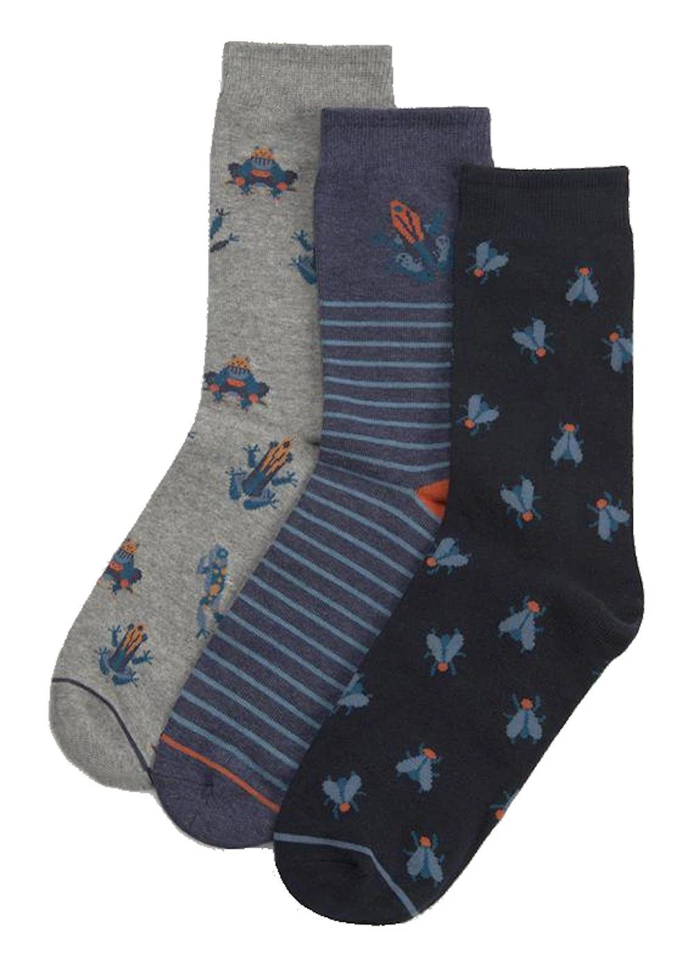 3er Pack Herrensocken Strümpfe von Ysabel Mora Herrenstrümpfe im 3er Pack mit bequemem Bund, Motiv Frosch Fliege, Strümpfe in grau, dunkelblau und blau